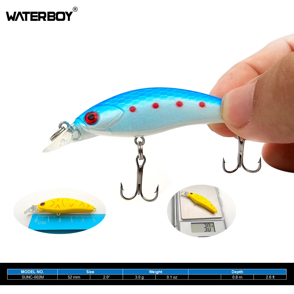 WATERBOY Mini Minnow cebo de pesca 5,2 cm /2 pulgadas 3 g/0,1 OZ Iscas peces Wobblers Swimbait Peche tamaño pequeño nuevo señuelo Artificial duro