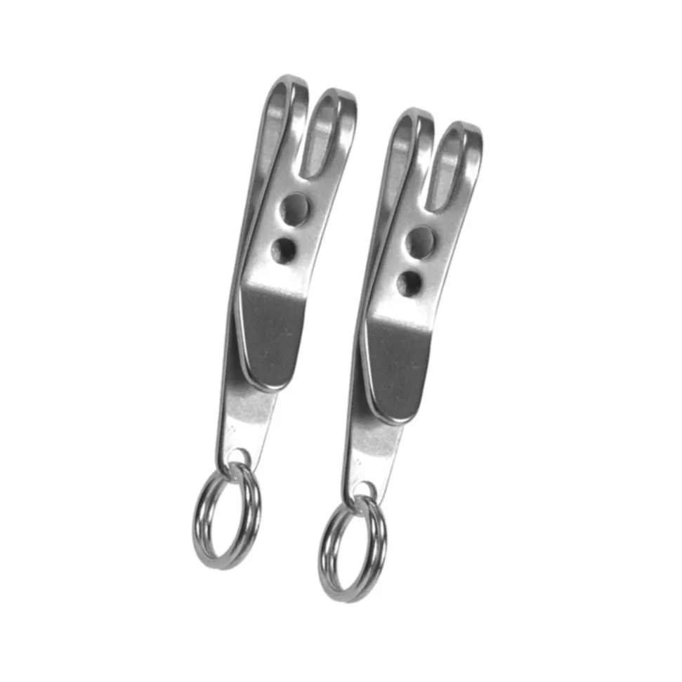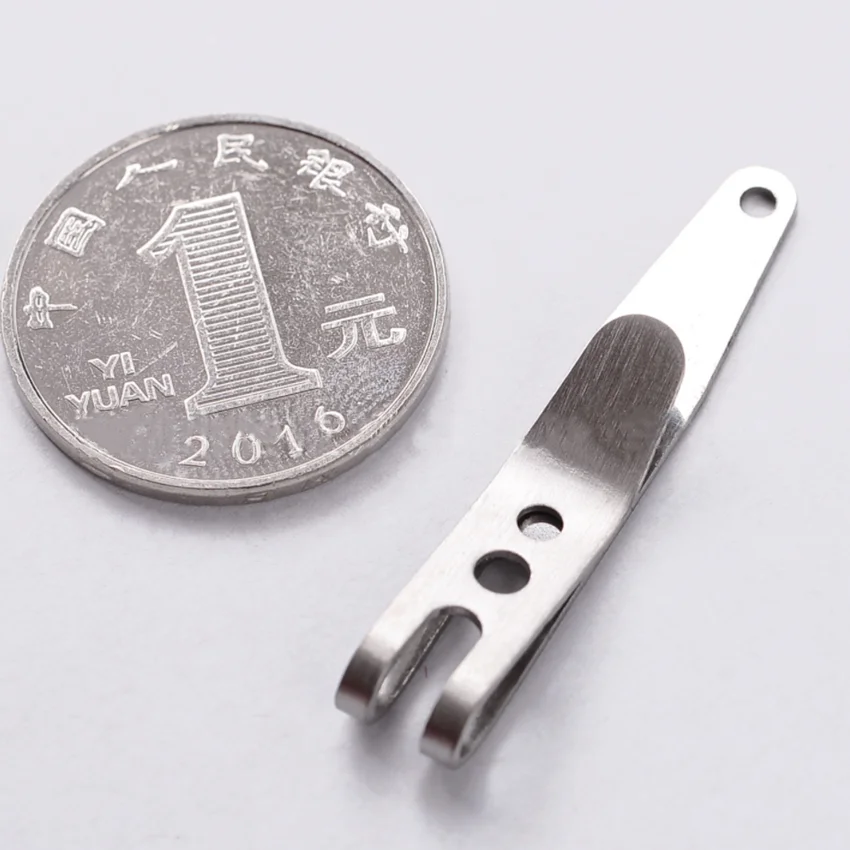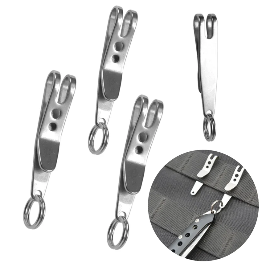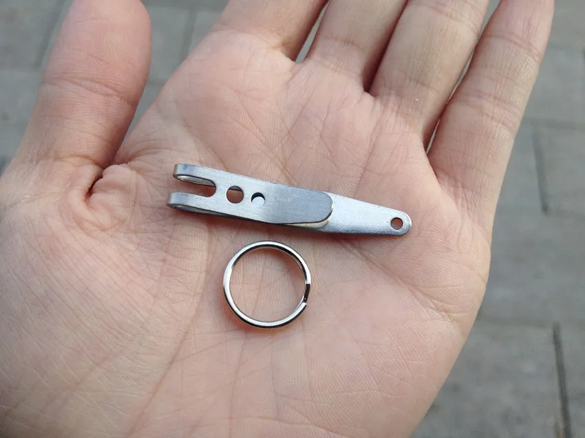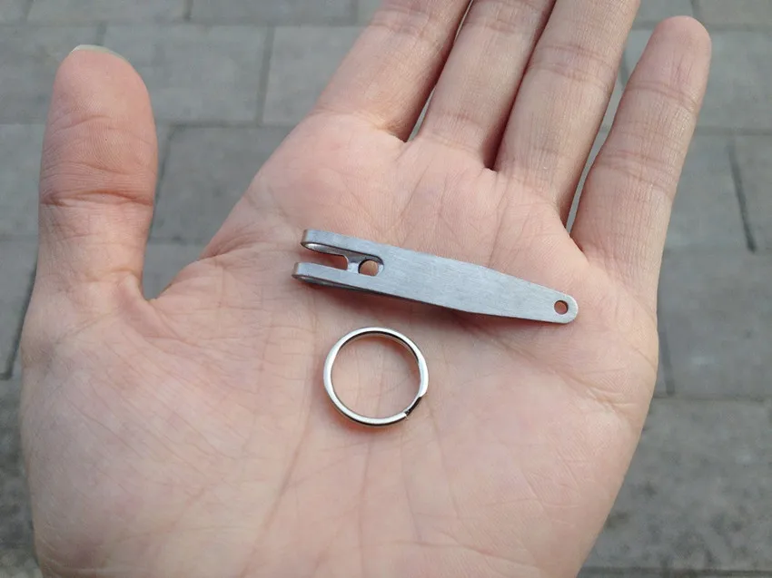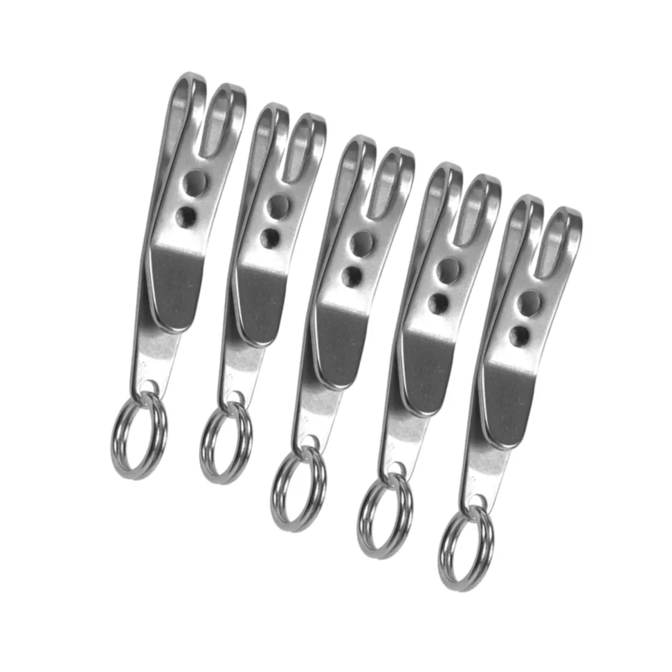 Mayorista 1/5 Mini Edc Gear Pocket Suspensión Clip Percha Llavero Llaveros Mosquetón Herramientas al aire libre Accesorios Característica: 1.100% nuevo y de alta calidad 2. Elástico ultra fuerte y protección contra el óxido 3. Fácil de llevar que puede sujetar en la capa intermedia de su bolsa 4. Fuerte y duradero para usar con material de acero inoxidable 301 5. Acabado brillante y tecnología de biselado de arco circular sin dañar la mano. 6. Equipado con anillo de acero de manganeso para colgar objetos 7. Adecuado para colgar algunos artículos EDC, como llaves, linterna, navaja suiza, etc. 8. Un artículo indispensable para tu vida diaria Especificación: Material: acero inoxidable 301 Tamaño total (L * W * T): 38*7*1mm Incluido: 1/5 x Clip de suspensión