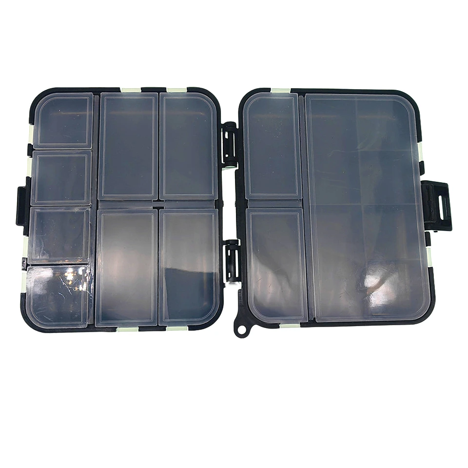 Mini estuche de almacenamiento, caja de aparejos de pesca voladores, 16 compartimentos, cuchara de pesca, gancho, caja de almacenamiento de cebo, accesorios de pesca