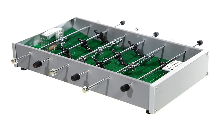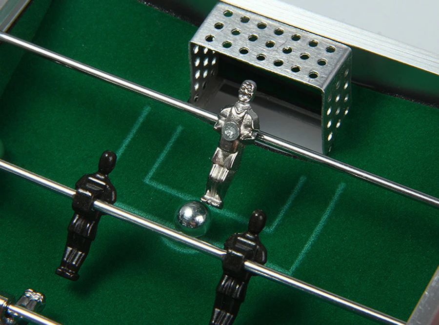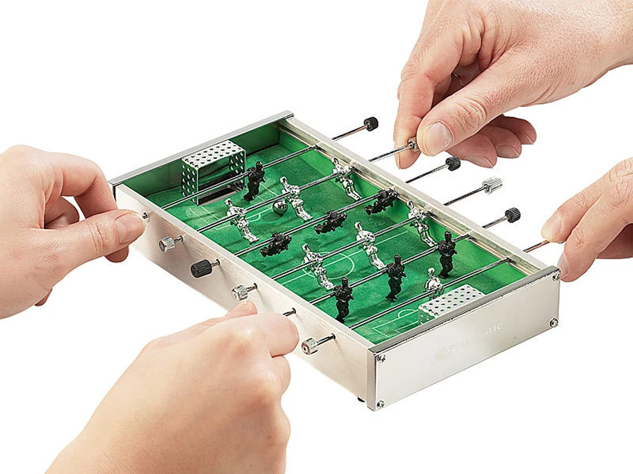 - Este divertido juego de futbolín te permite jugar al fútbol en cualquier lugar sin ocupar mucho espacio.