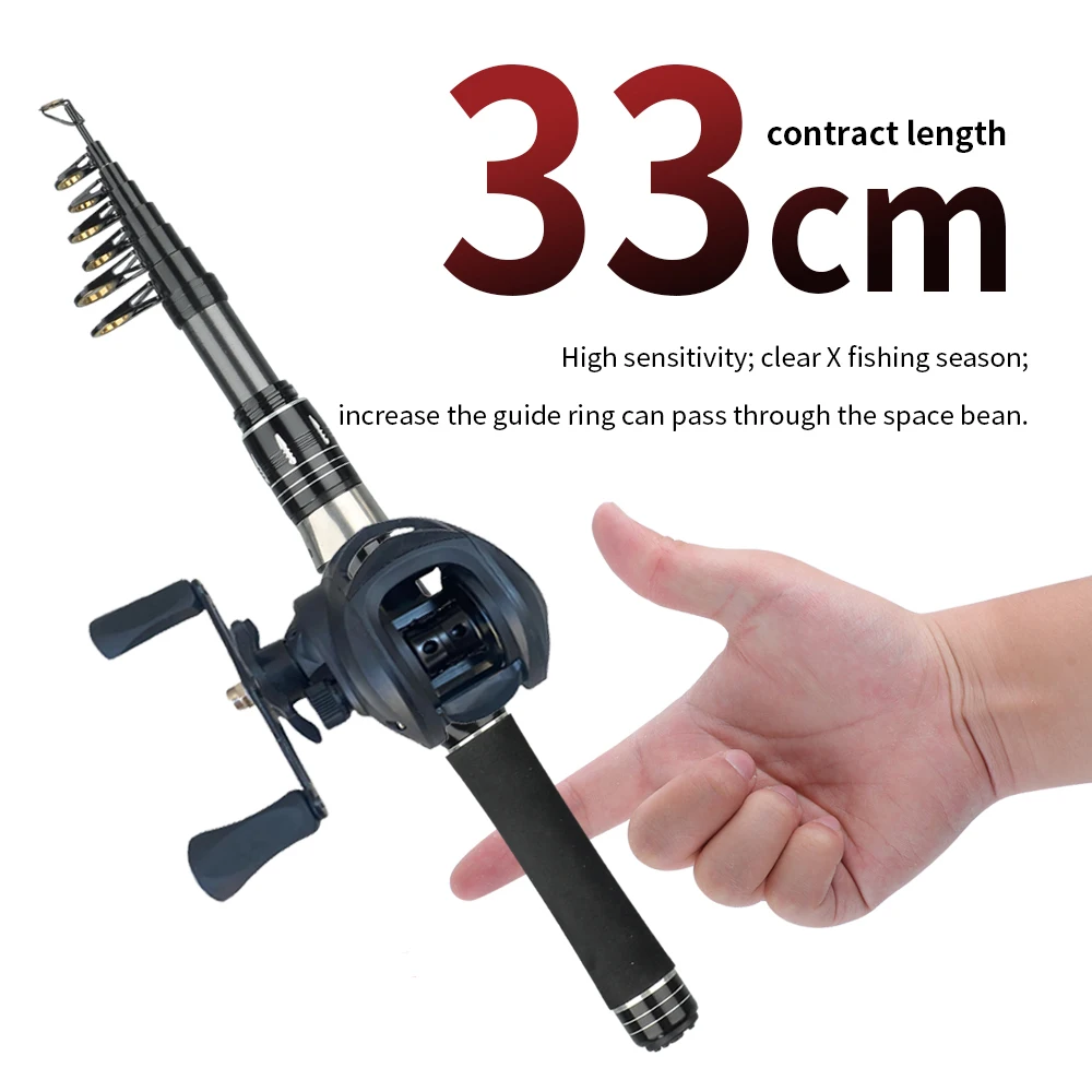 Mini Kit de caña de pescar portátil retráctil de 31cm, caña telescópica de carbono de 1,5-22,1M, carrete Baitcasting de alta velocidad 7,2: 1, pesca de carpa