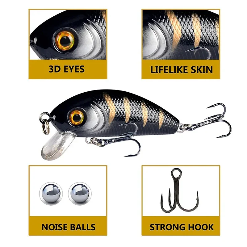 5. Fácil de usar: Este cebo duro se fija con una aguja de gancho, lo que hace que sea más conveniente reemplazar la aguja de gancho. Puede elegir el tamaño de ganchillo adecuado según sus necesidades para una pesca fácil y rápida.