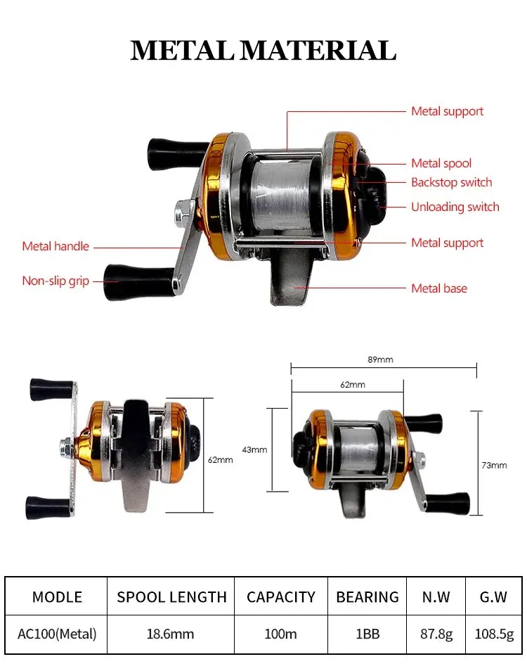 Modo I Total compras Imagen Vídeo noticias vídeo corto Mapa Libro Web Línea aérea Finanzas sin definir sin definir sin definir 14 sitios 'AC100 Reel' es un término comúnmente utilizado en diversos campos, como equipo de pesca o productos electrónicos. El significado varía dependiendo del contexto, por lo que cambia según el campo sobre el que quieras informarte. Suministros de Pesca: Carrete de Pesca El significado más común se refiere a un pequeño carrete utilizado en la pesca. Propósito: Este es un mini carrete de pesca (carrete de cebo) utilizado principalmente para pesca en hielo o pesca ligera en invierno. Características: Especies de peces objetivo: Se utiliza para pescar especies como el pollock, el lucioperca y la lubina. Fabricantes: Kiyura, Yoshikawa y otras marcas de equipo de pesca lanzan modelos similares. Especificaciones: Generalmente tiene una relación de engranaje baja y peso ligero, adecuado para pesca delicada. Equipo de pesca: carrete de cebo También se refiere al modelo de carrete de cebo llamado 'Aircast AC100' de la marca PRO MARINE.