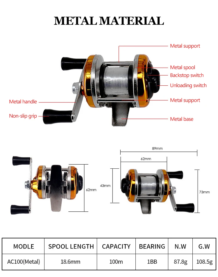 • Cuerpo principal de metal :El cuerpo principal de metal garantiza la durabilidad y la longevidad, por lo que es una opción confiable para la pesca en hielo.