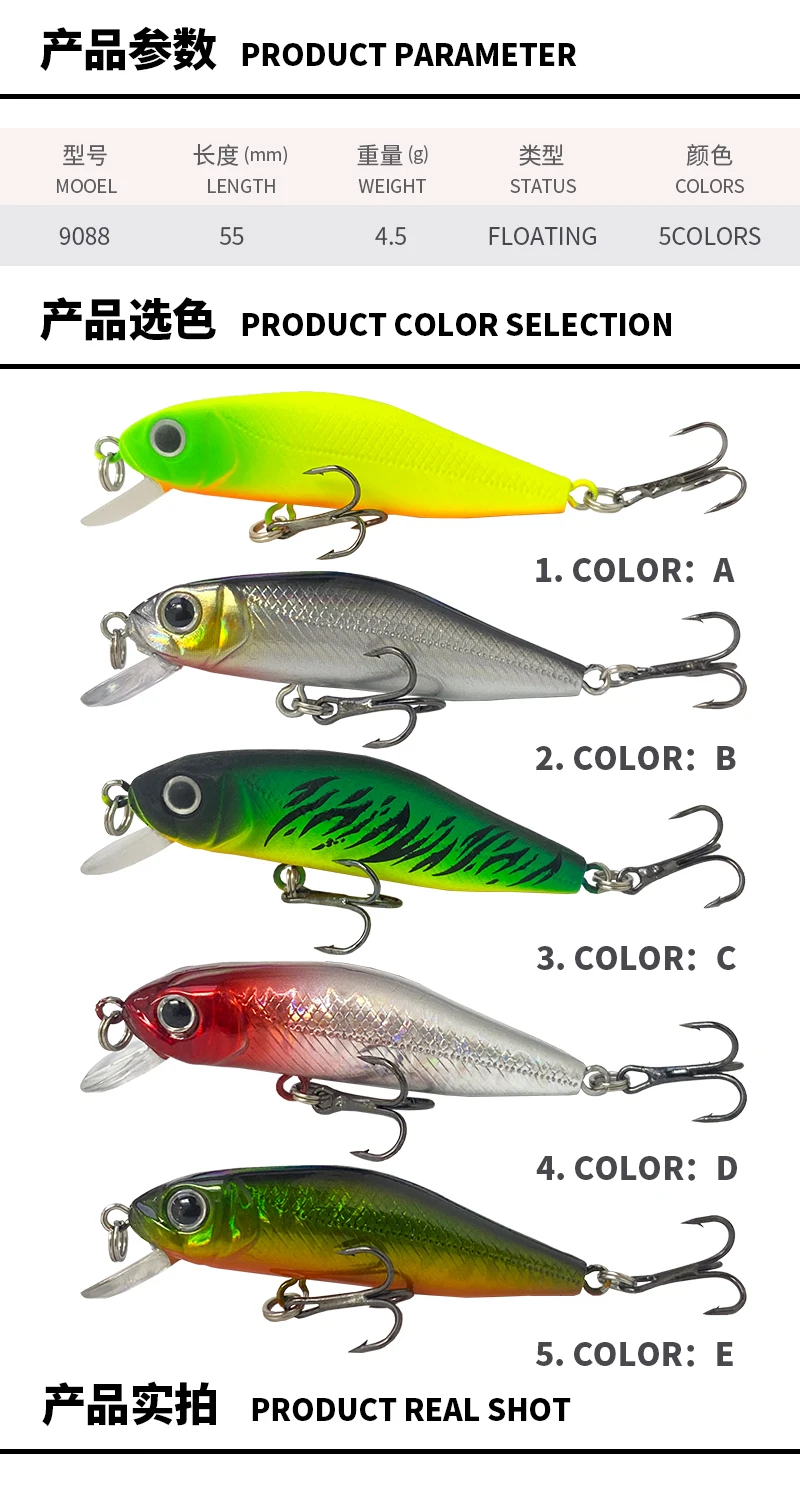 55mm 4,5G flotante Minnow Jerkbait señuelo de pesca Wobbler para lubina cebo duro Artificial plástico profesional Swimbait 3D Tackle