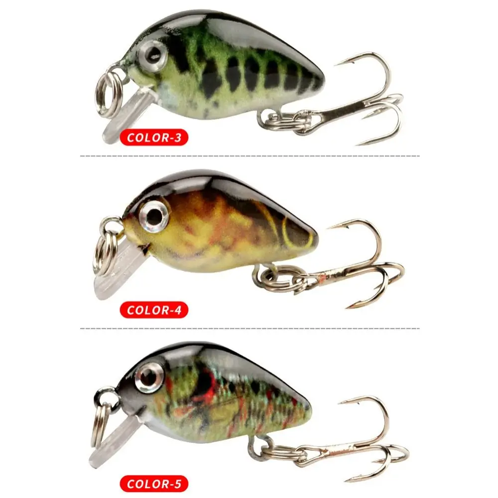 Color: 5 colores Longitud: 3cm (1,18 pulgadas) Peso: 1,7G material: embalaje de plástico: 1 señuelo de pesca nota: medición manual, el tamaño tendrá un error de 0,5-2mm (0,02-0,08 pulgadas), sujeto al artículo real. Debido a las diferencias de luz y pantalla, el color de los productos puede ser ligeramente diferente al de la imagen.