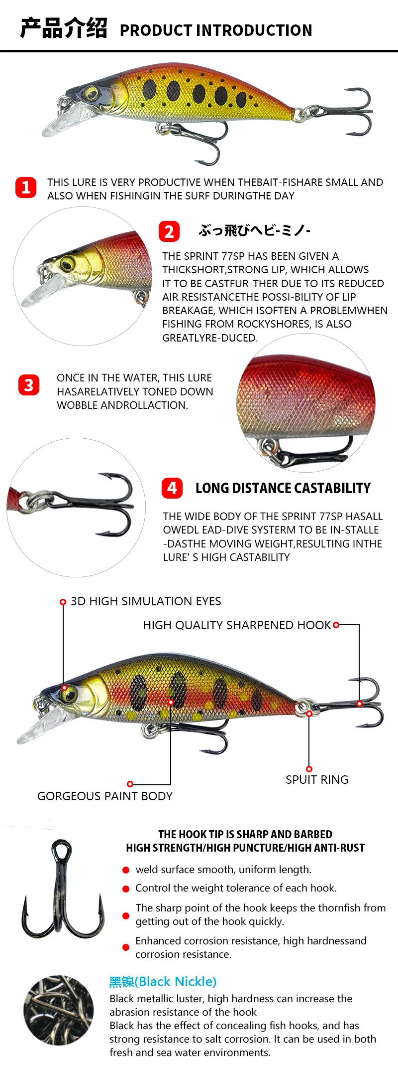 Mini señuelo de pececillo hundido de 50mm y 5,2g, Wobbler de Pesca de fundición larga para Lucio, trucha, cebo duro Artificial de agua dulce, equipo de Pesca