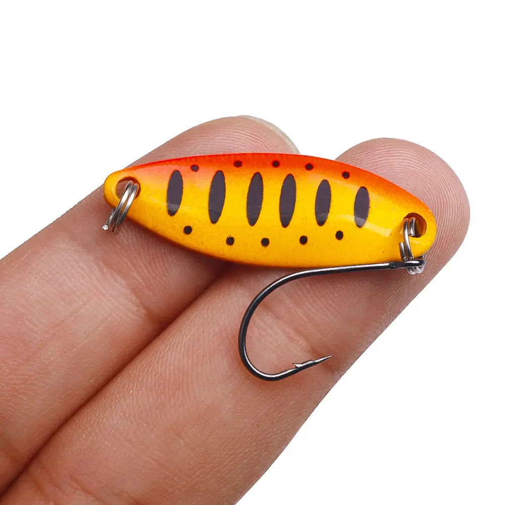 Mini señuelo de Pesca de 3,6 cm/2,5g, señuelos de Metal con cuchara, cebo giratorio, pececillo, pez pequeño, anzuelo único, Jig Stream, trucha, cebos de Pesca