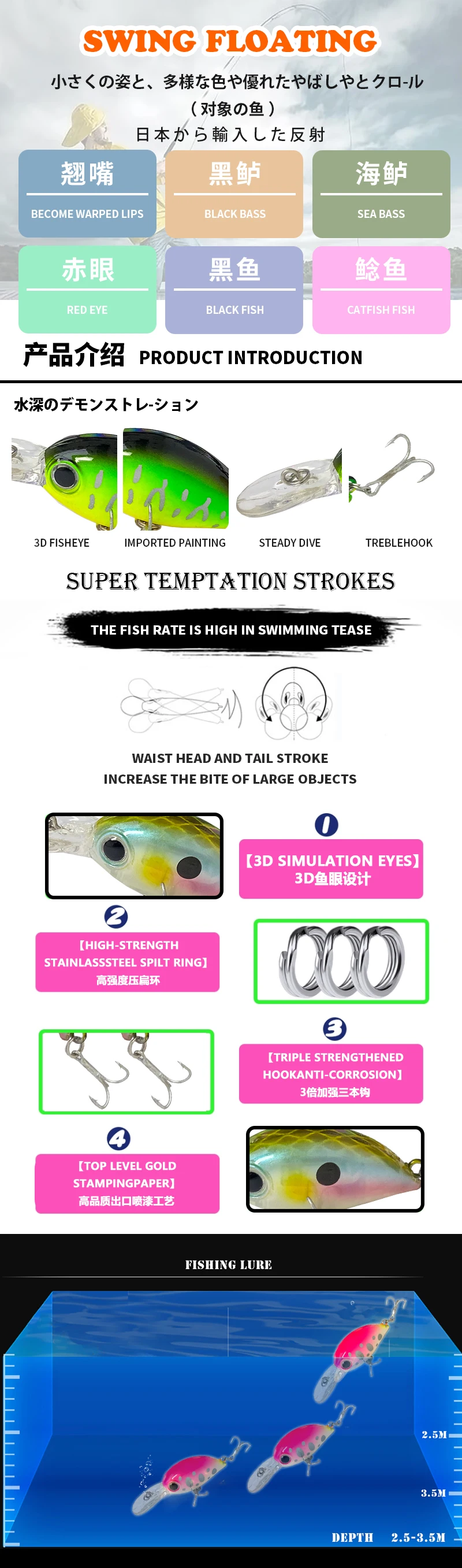 1. The bait body adopts advanced environmental protection materials, not only has a high impact strength, but also does not produce harmful substances to the environment.