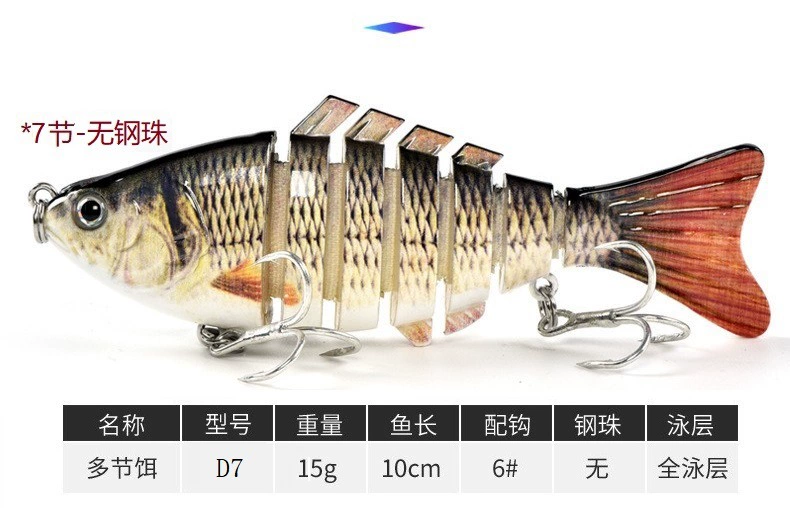 Este cebo duro multiarticulado es uno de los mejores accesorios de su caja de aparejos. Tiene una apariencia realista y puede crear acciones de natación realistas en el agua para provocar que el depredador muerda. Si eres un amante de la pesca, toma este señuelo de pesca y aumentará tus capturas y te brindará más diversión.