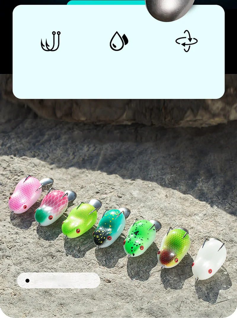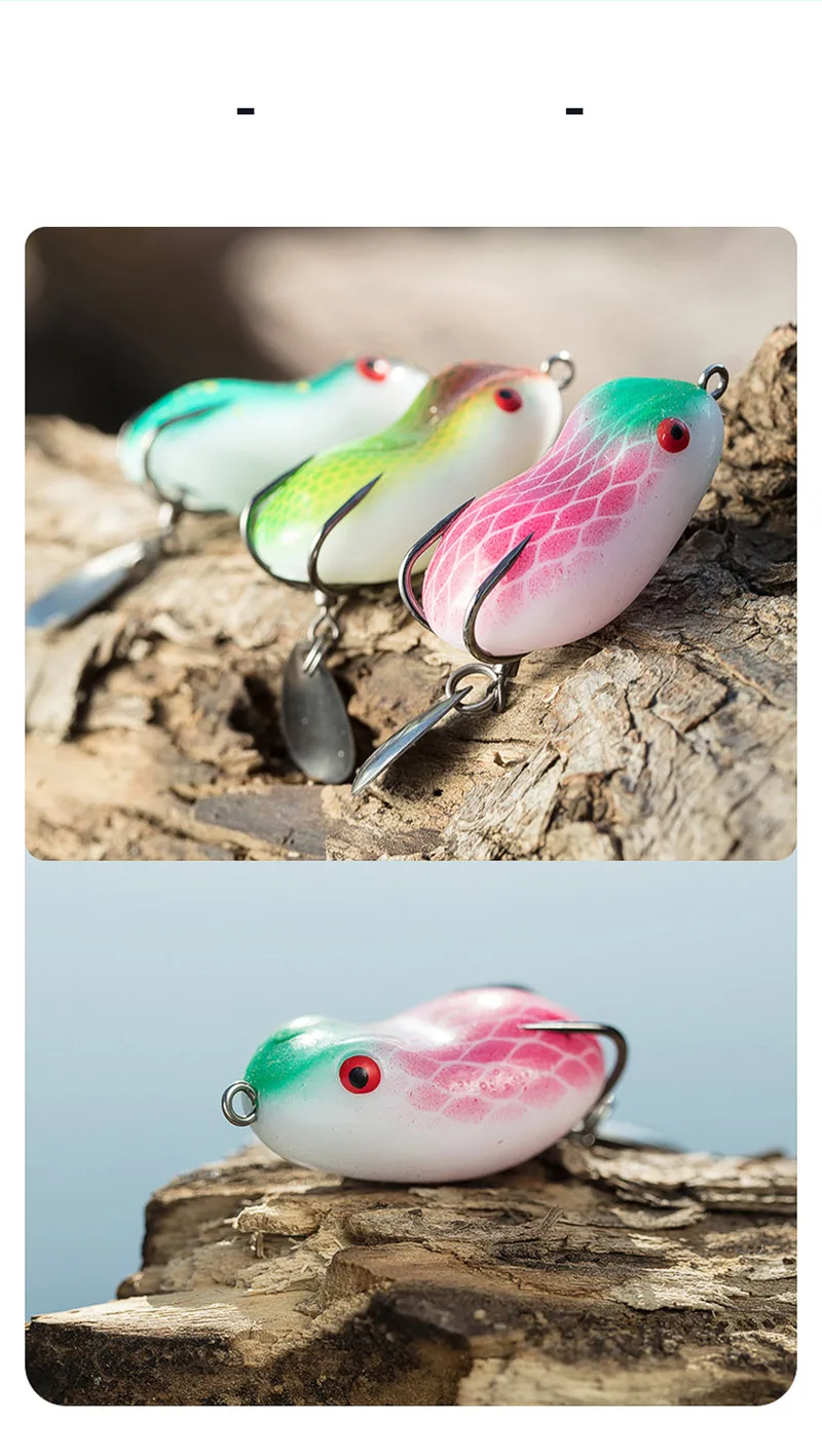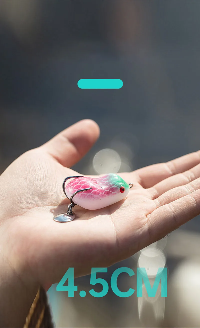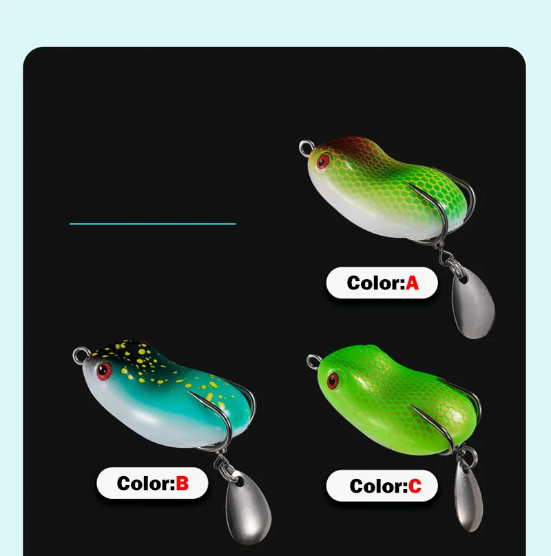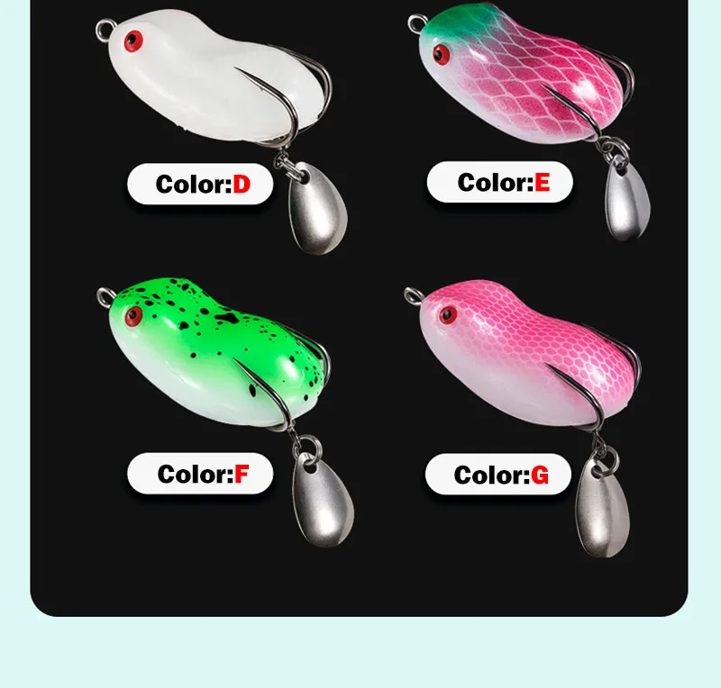 Descripción :Mini señuelo de pesca de rana suave, cebo giratorio con lentejuelas de Metal, doble gancho, cebo de rana trueno, 7/12g, Micro Topwater Wobblers Swimbait