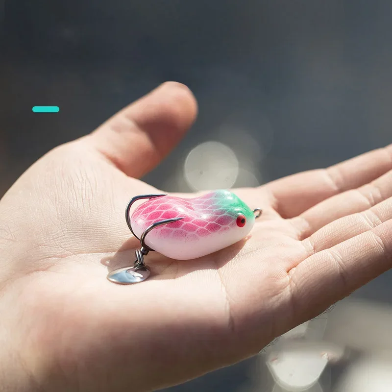 Descripción :Mini señuelo de pesca de rana suave, cebo giratorio con lentejuelas de Metal, doble gancho, cebo de rana trueno, 7/12g, Micro Topwater Wobblers Swimbait