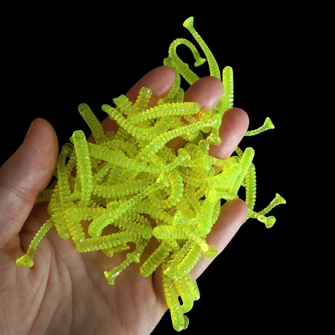 Mini señuelo de Pesca suave de 30 piezas, 4,5 cm, pequeño, cola en T, gusano, Wobbler Isca, carpa, cebo Artificial, aparejos de Pesca