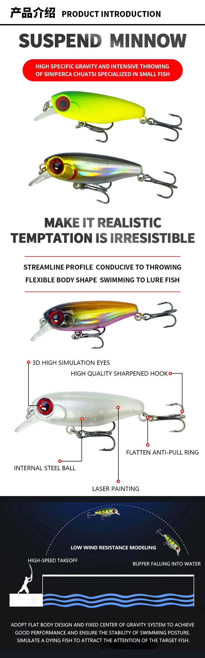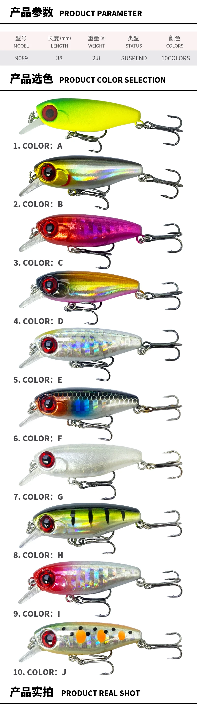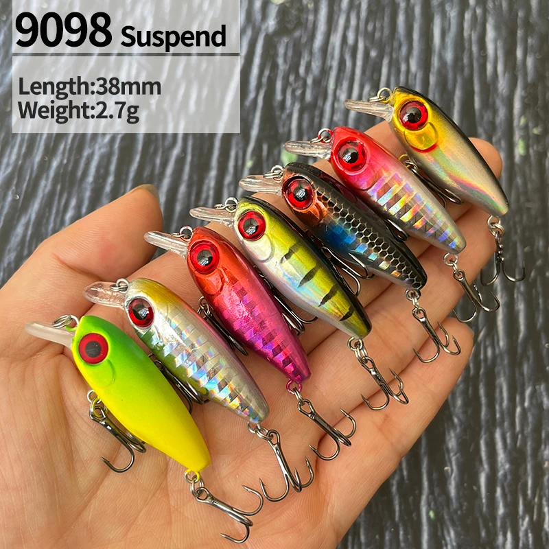 Mini señuelo de pesca suspendido, 1 piezas, 38mm, 2,8g, cebo Artificial para Lucio de agua dulce, trucha, suministros de pesca, accesorios Jerkbait Swimbait