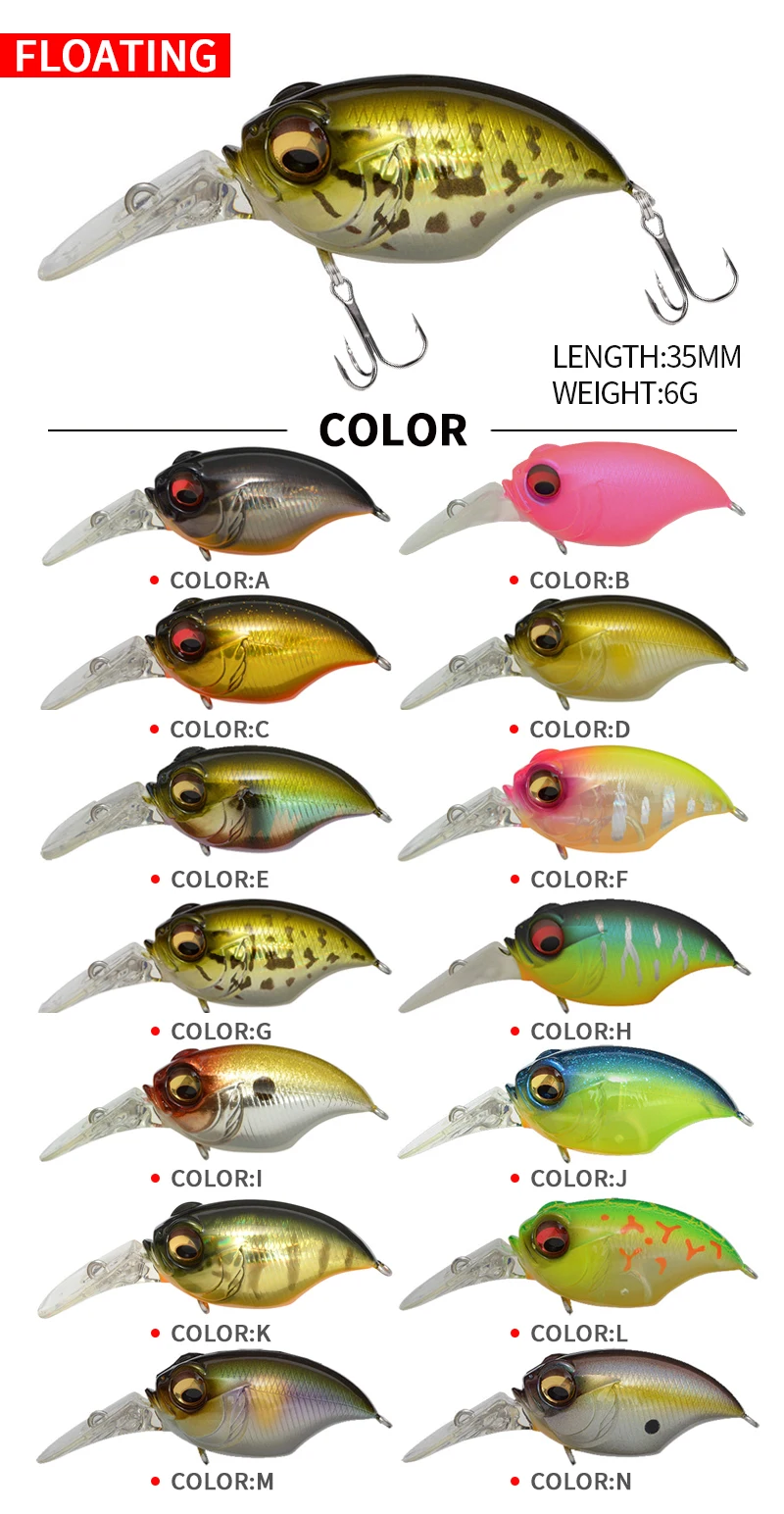 Señuelos de Pesca Ruidosos para Agua Dulce, Señuelos de Pesca de Minnow, Micro Crankbait, Wobbler, Isca, Artificial, Aparejos, 9022, 1mm, 35mm, 6g,