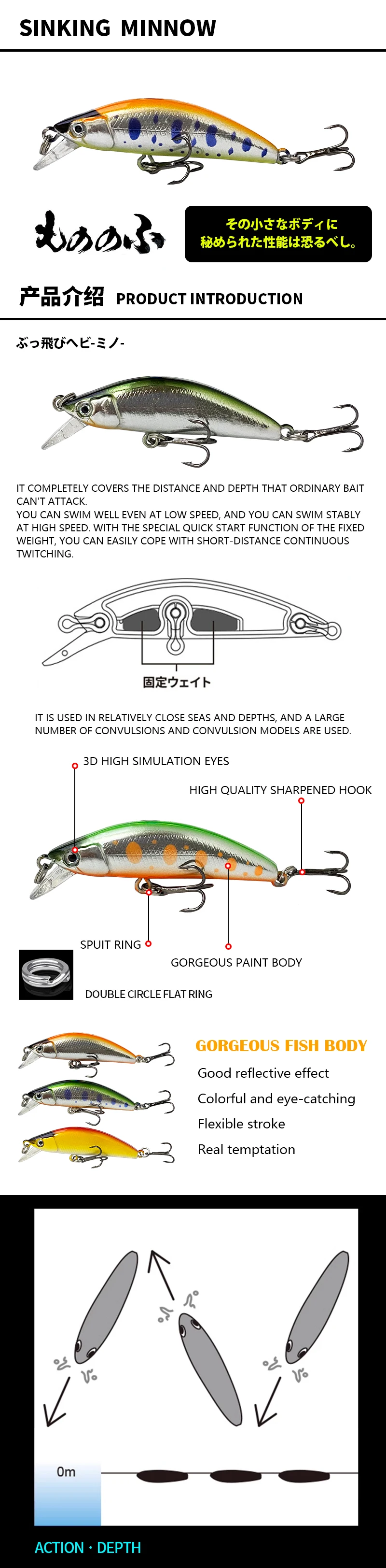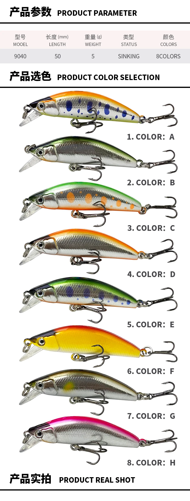 Mini señuelos de pececillo de hundimiento lento, cebo Artificial, equipo de pesca, Jerkbait, Twitch, Wobbler, para Peche, trucha, Lucio, Swimbait, 50mm, 5g
