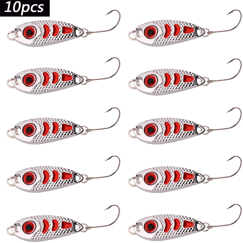 Mini Señuelos de Pesca, 10 piezas, 1,5g, 2,5g, 3,5g, cuchara, señuelo de Metal, Spinnerbsit, Minnow, pez pequeño, anzuelo único, Jig Stream, trucha, cebos, Pesca