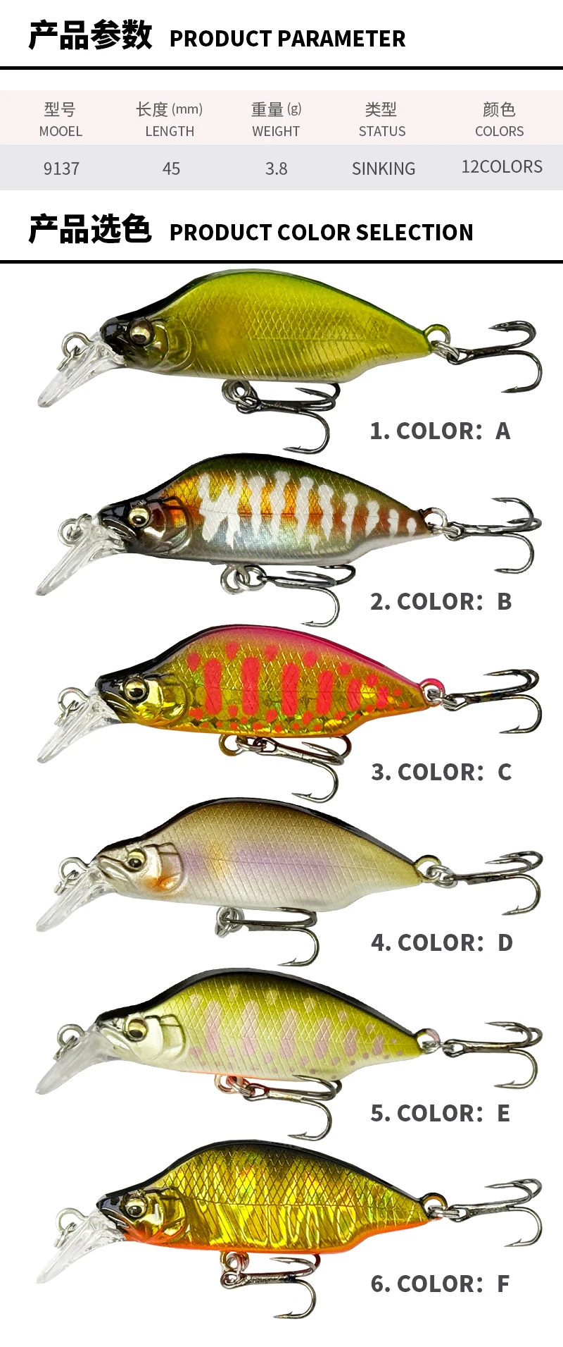 Señuelos de pesca de pececillo que se hunden, 3,8g, 45mm, diseño japonés, cebo Artificial para perca, lubina, Jerkbait, Swimbait, equipo Wobbler