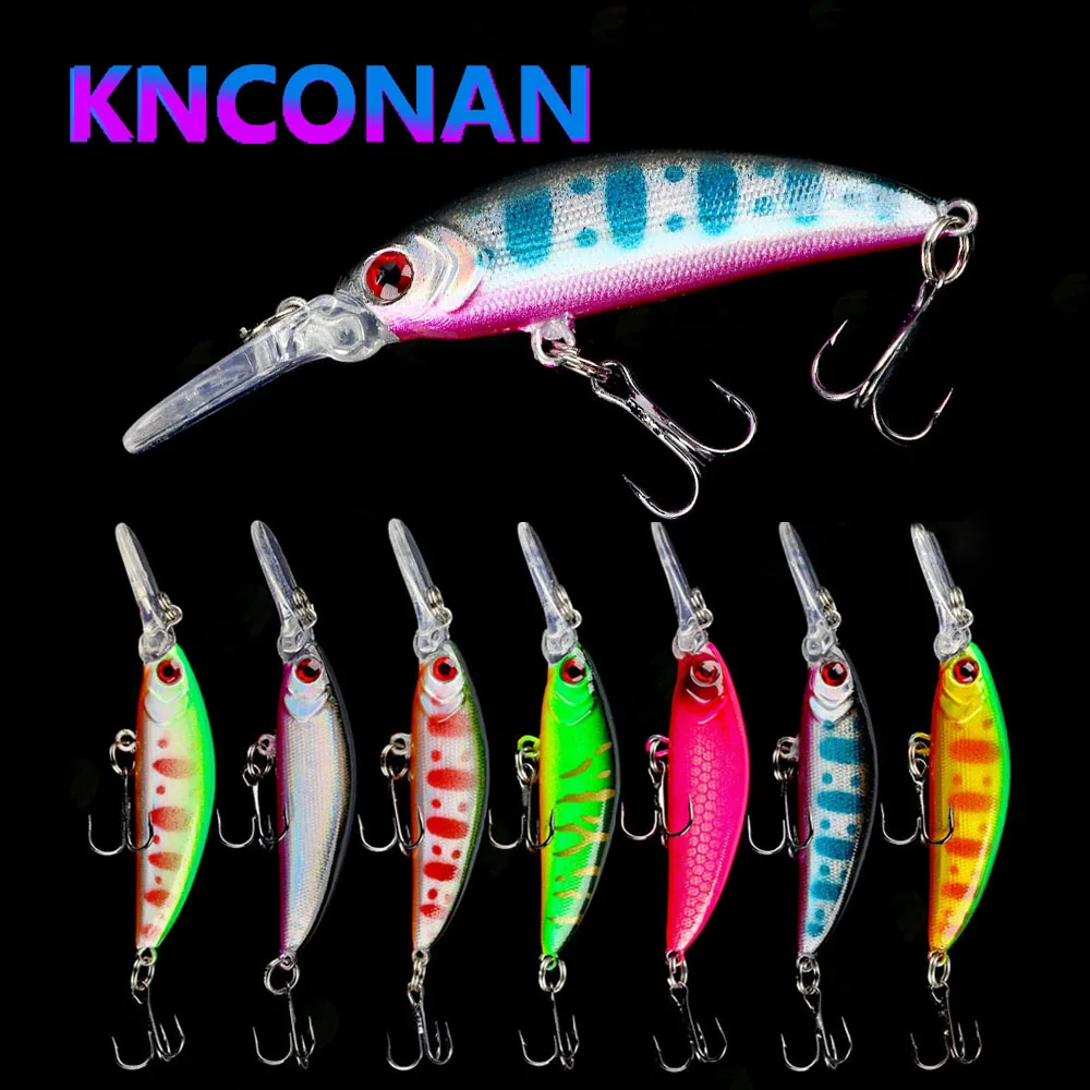 Mini señuelos de pesca de pececillo que se hunden, cebo duro Artificial, Crankbait para lubina de agua dulce, equipo de plástico Swimbait, 70mm, 6G