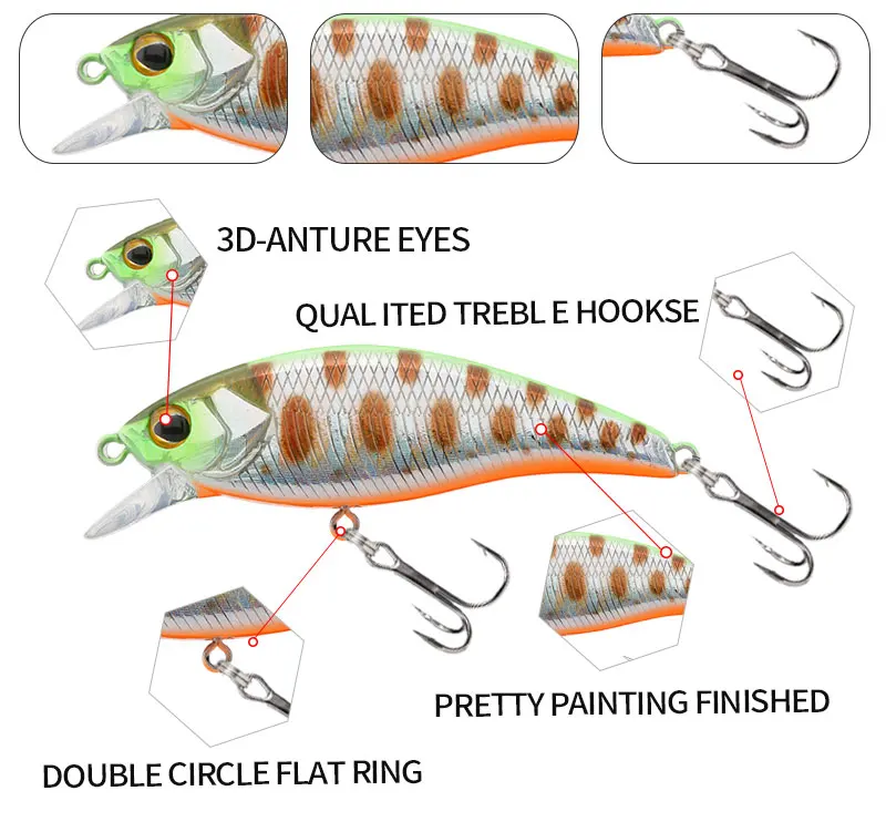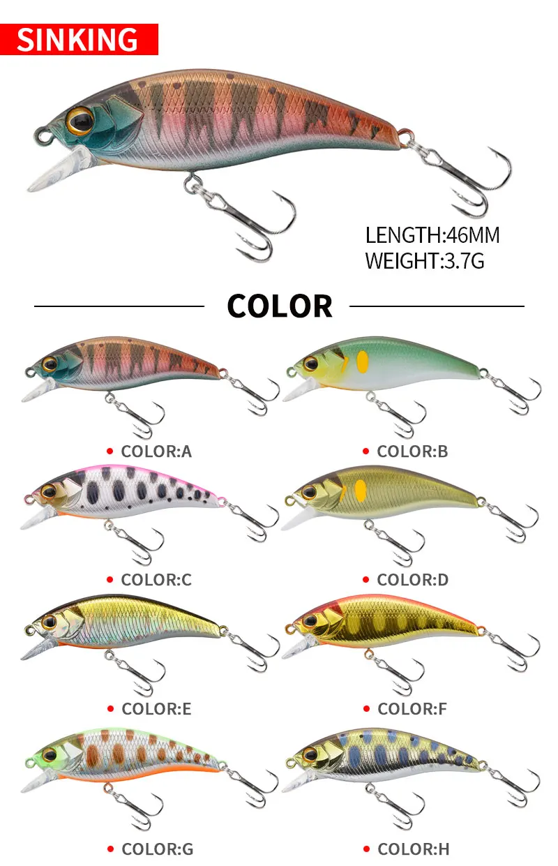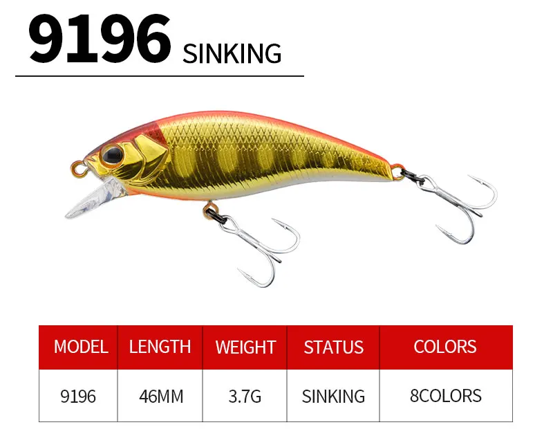 Señuelo de pesca artificial para trucha, carpa, corriente de lago, cebos duros, Jerkbait, lubina, 3,7G, 46mm, 9196G