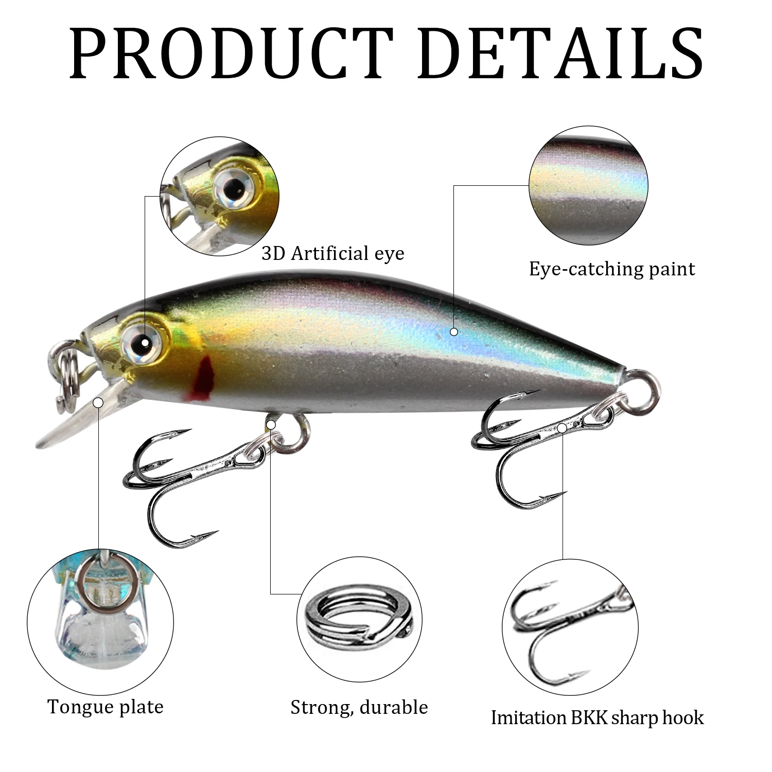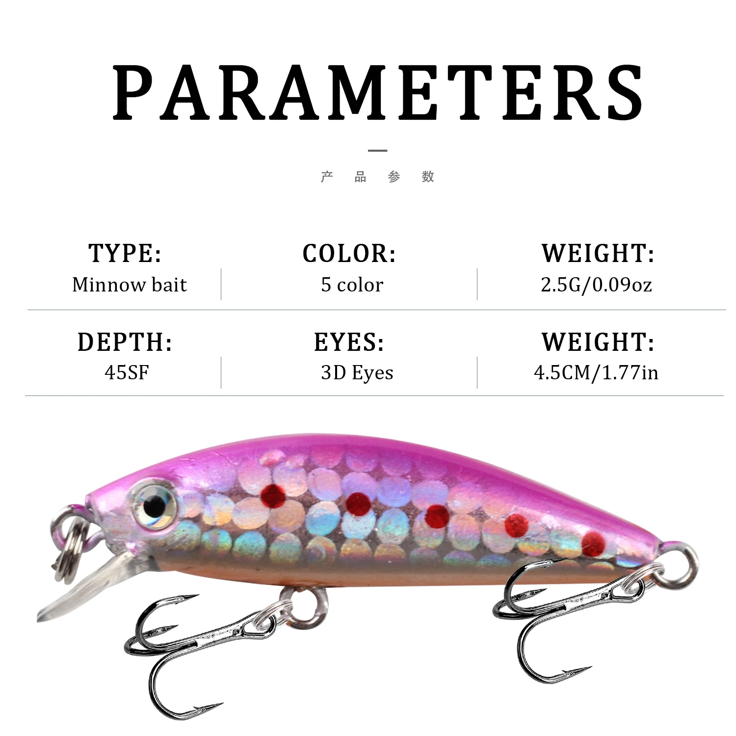 Mini Señuelos de Pesca de pececillos, cebos duros artificiales de diseño japonés para lubina, Lucio, trucha, aparejos, Wobblers, 4,5 cm, 2,5g, 1 pieza