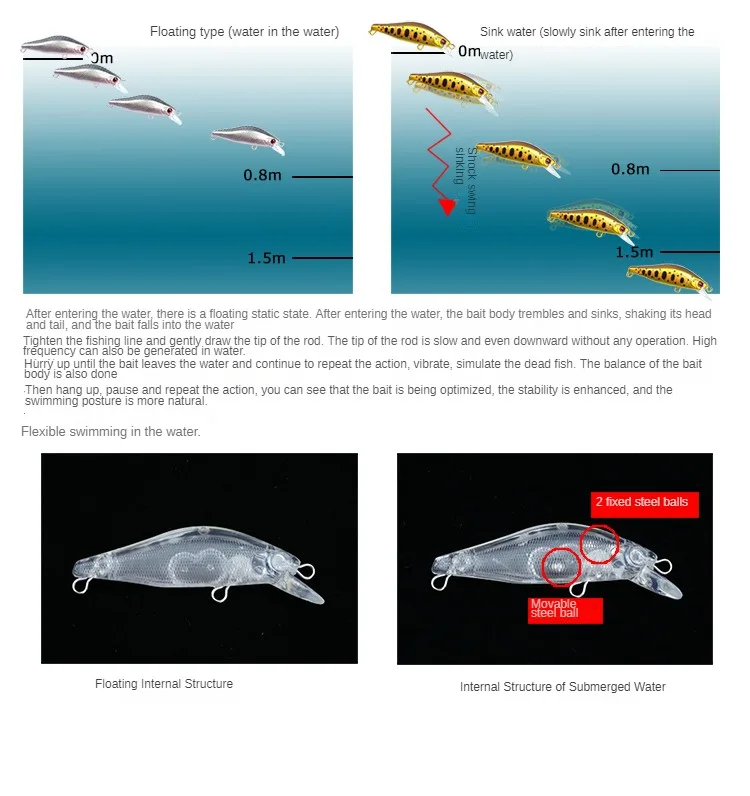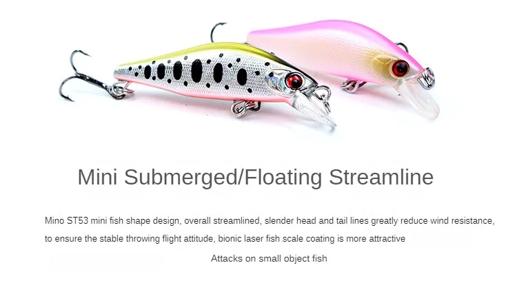 Mini Señuelos de Pesca de pececillos flotantes de hundimiento lento, 1 piezas, 53mm, 3G, Swimbaits Wobblers artificiales duros para trucha