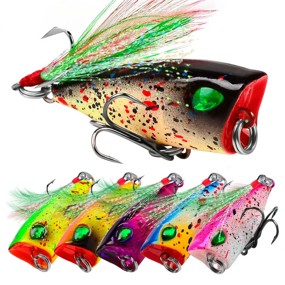 Mini Señuelos de Pesca Popper, 4,3 cm, 4g, cebo duro Topwater, Wobblers artificiales, aparejos de Pesca de plástico con ganchos de plumas 10 #