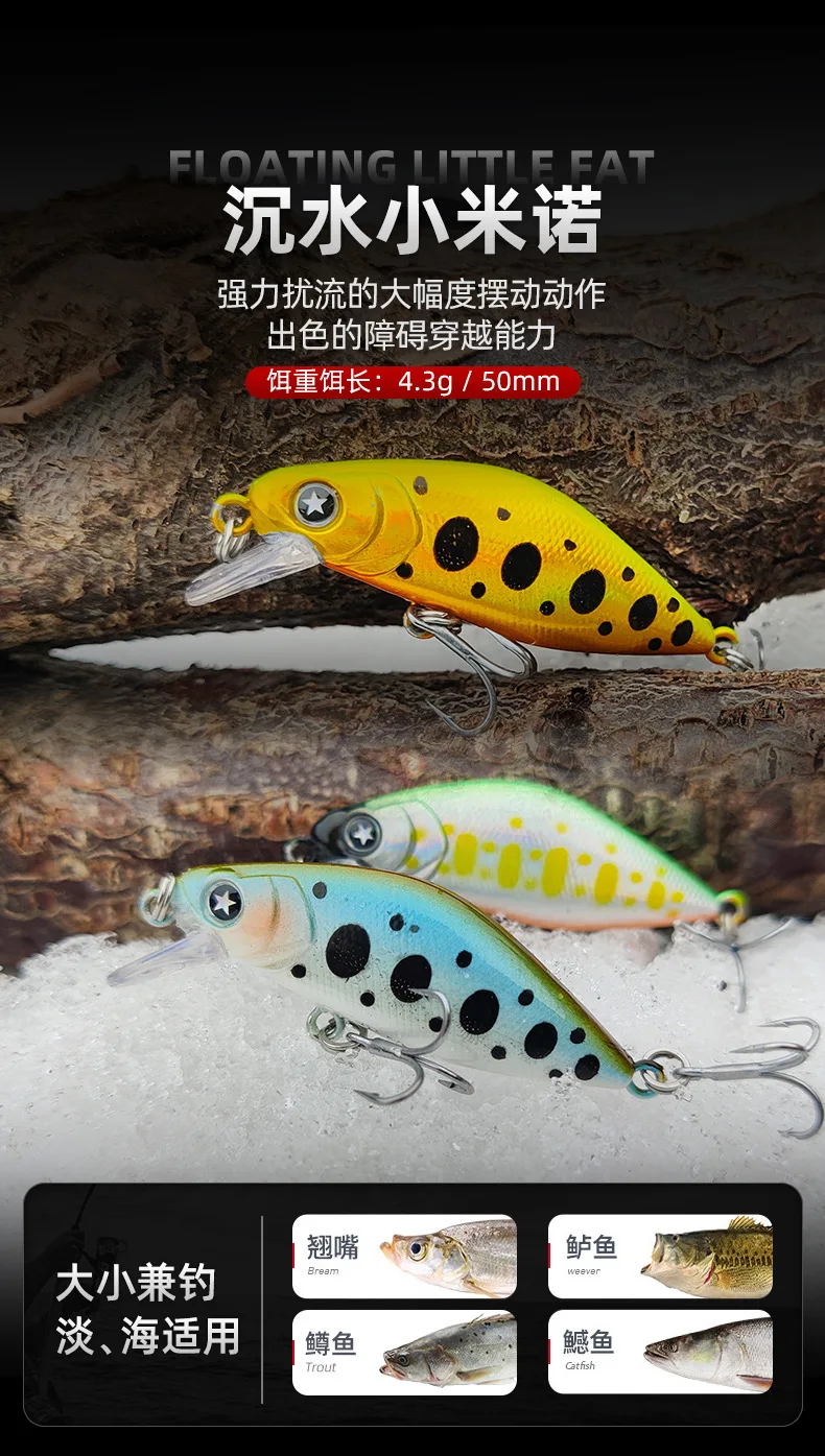 Mini Señuelos de Pesca que se hunden, 50mm, 4,3g, Jerkbait, Lucio, Carkbait, Wobblers, Swimbait, cebo duro