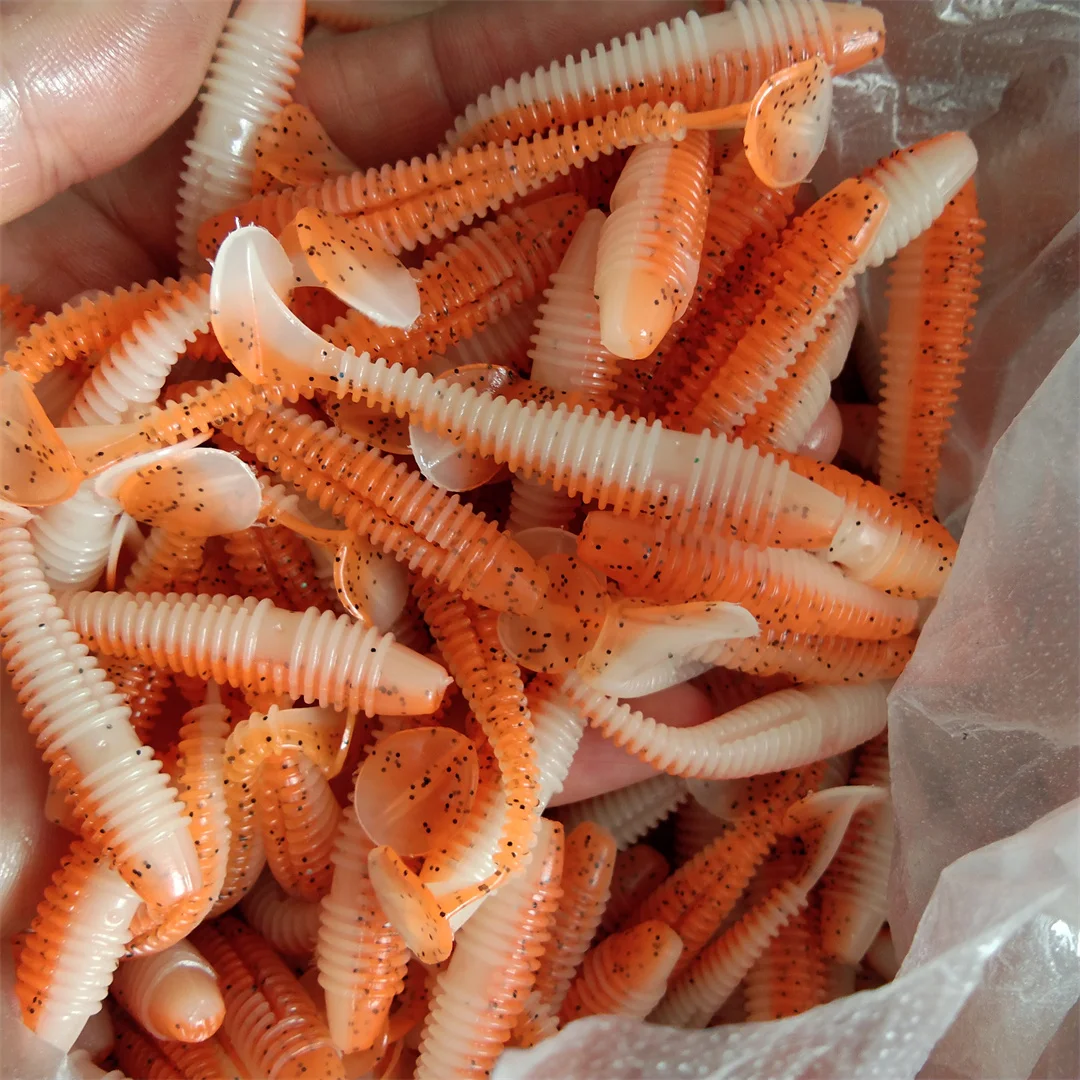 Mini Señuelos de Pesca de silicona, cebos blandos de goma, gusanos blandos, cebos artificiales de lubina, 100 piezas, 5,5 cm