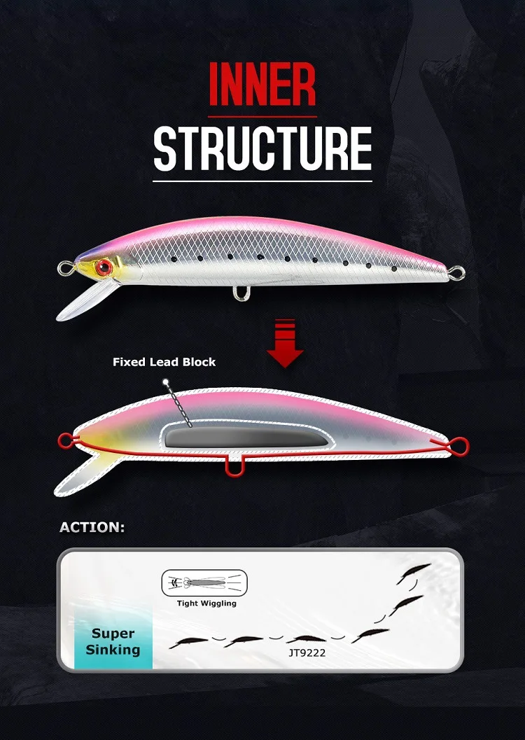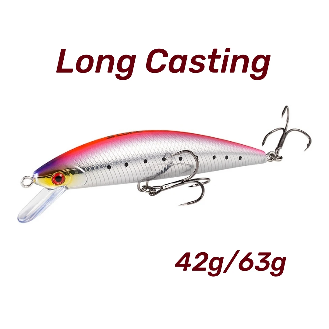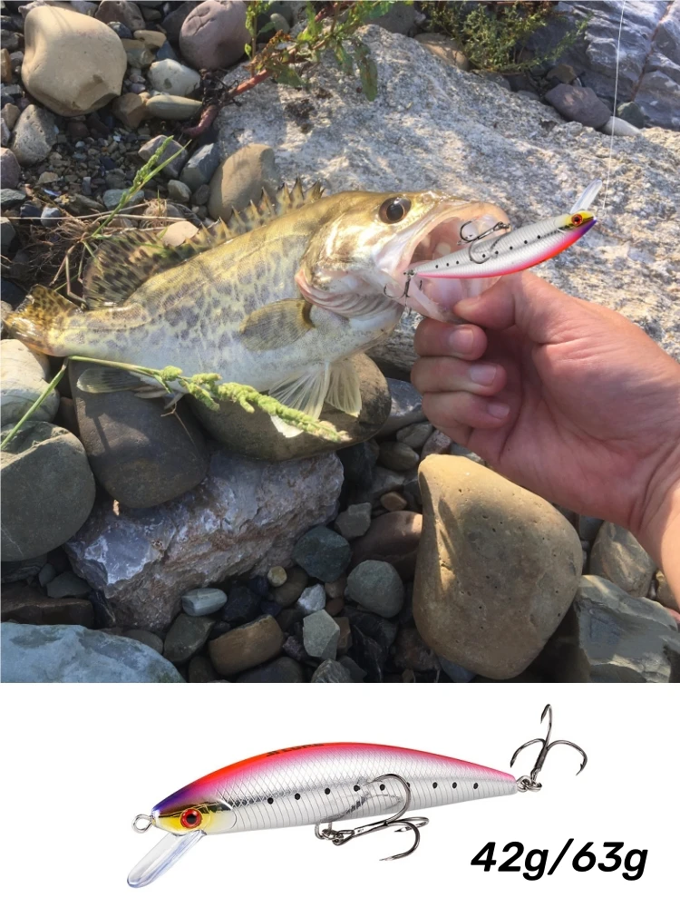 Minnow de gran peso con larga distancia de lanzamiento para pesca, señuelo de pesca de 42g/63g con apariencia realista y acción de hundimiento