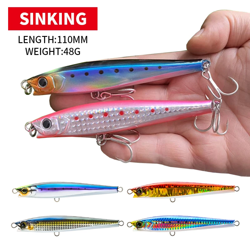 Minnow hundido para Pesca, 110mm, 48g, Pesca de mar, trucha, lubina GT, pececillo de fundición pesada, Isca, Pesca Artificial, cebo duro 9007