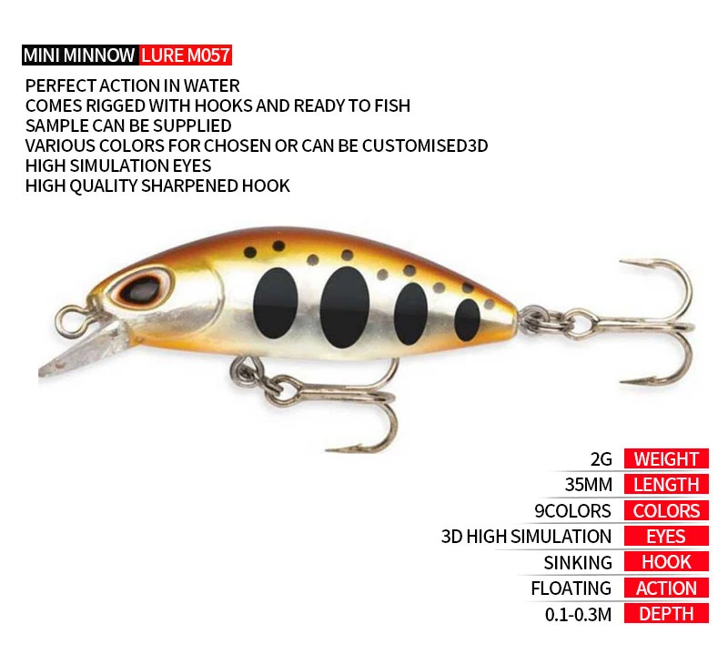 35mm 2G hundimiento Mini Minnow señuelo de Pesca japonés Isca Pesca cebo Artificial carpa Lucio Wobblers Minnow M057