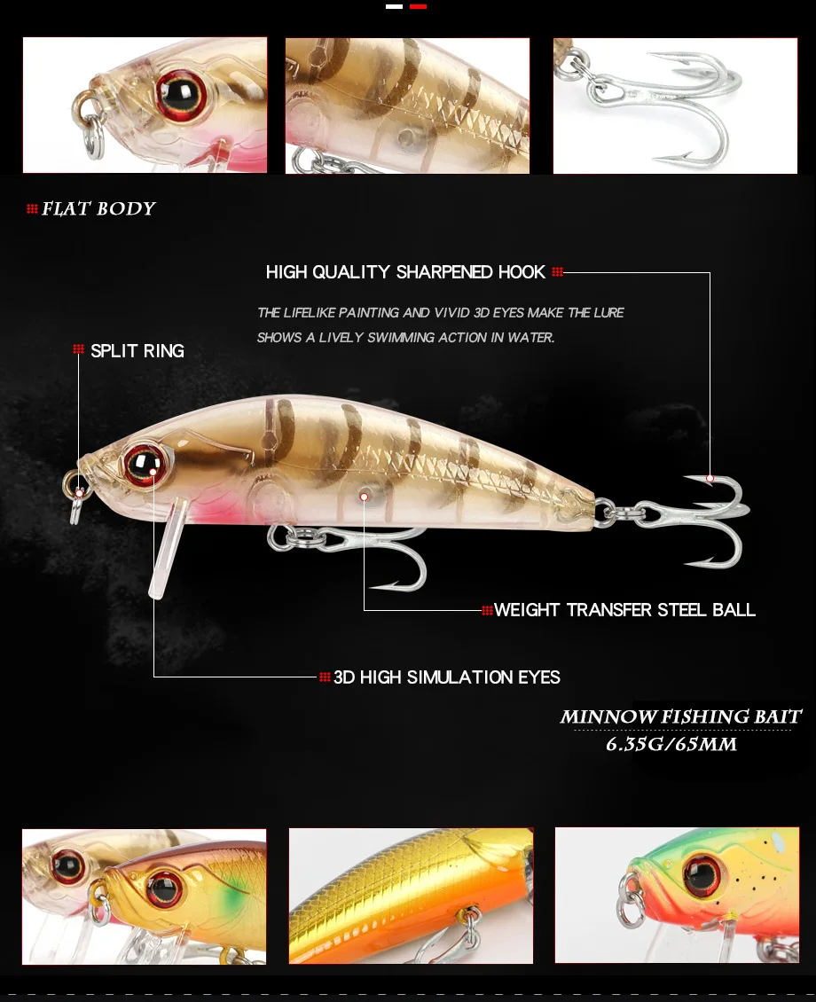 Minnow-señuelo de pesca flotante, cebo Artificial de plástico duro, Swimbait, aparejos de pesca de 6,5 cm y 6,3g