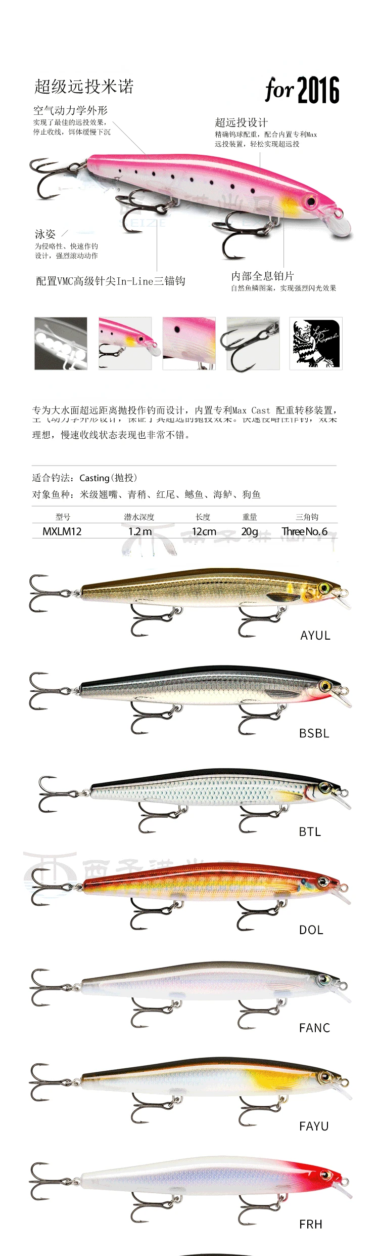 Minuo MXLM12 señuelo de lanzamiento de largo alcance, cebo importado.