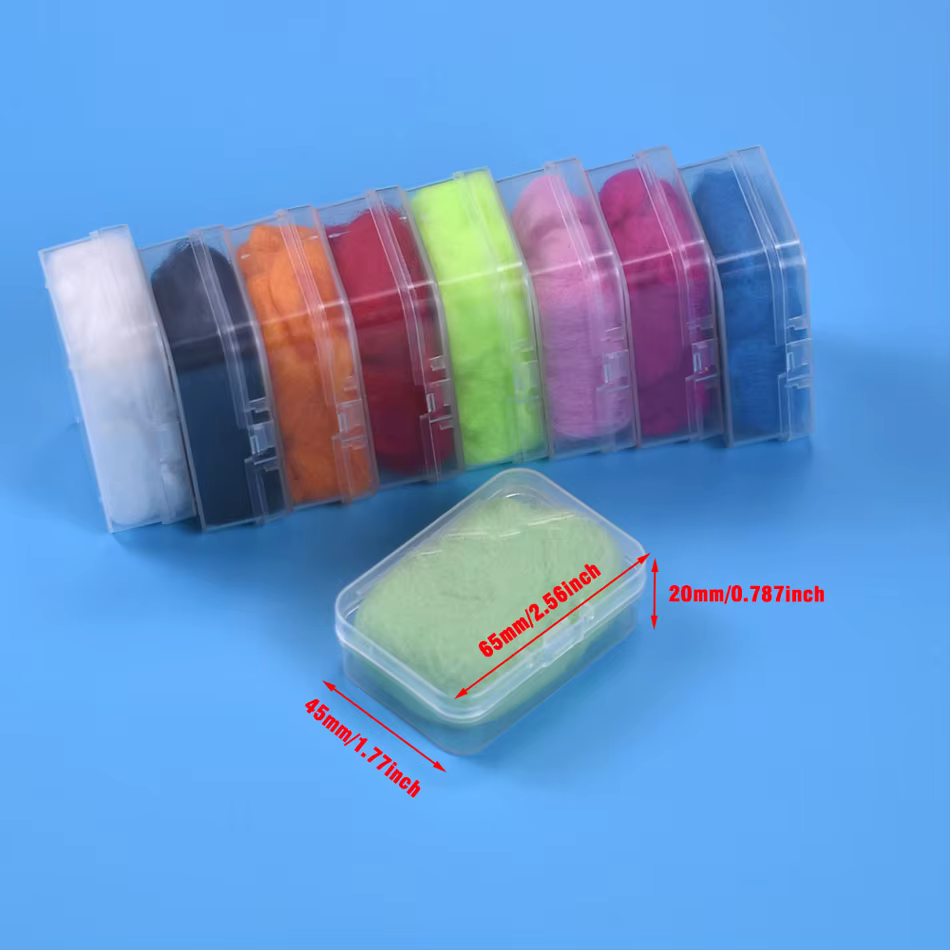 Descripción del producto: Egg Yarn es un hilo suave y esponjoso que se usa comúnmente en Glow Bugs y otros patrones de huevos.También es popular aplicarlo para atar peces pececillos o agregar el efecto de pelusa a la cabeza. Colores: amarillo, rojo, azul, gris, meñique, verde oscuro, negro, rojo rosa, naranja, verde claro, blanco Tamaño: alrededor de 3 g por caja Paquete: 3 g/caja