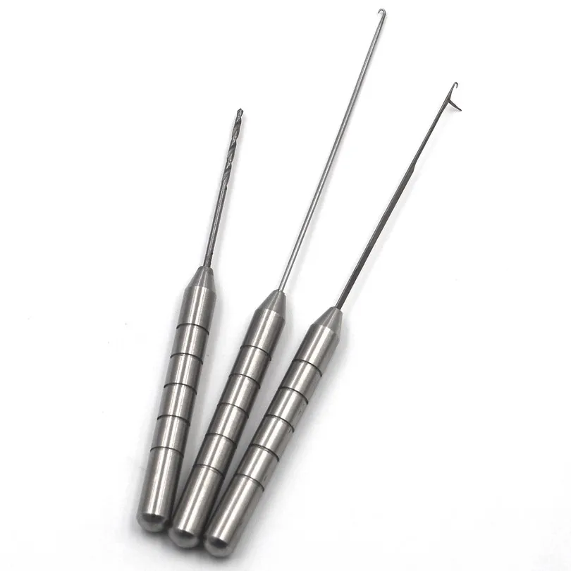 MNFT 1 Juego con 3 uds. De aparejos de pesca de acero inoxidable, juego combinado de taladro y aguja, herramientas de aparejos de pesca de carpa fuertes y fáciles de usar