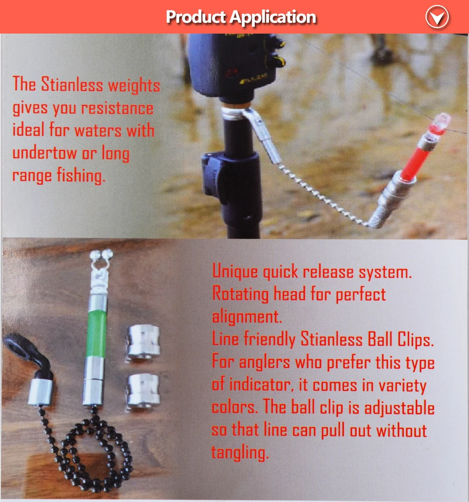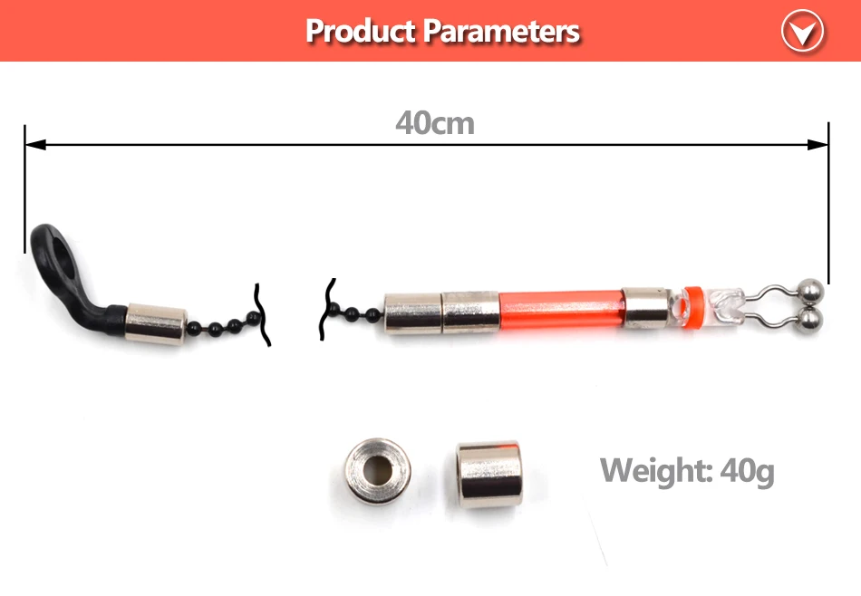 Features: Clear texture and exquisite workmanship. Long service time and so durable.Simple to use,Professional and very pratical. Compact size and lightweight, easy for carry.Super sensitive, won't miss a bite.Screw on weights, adjustable to fit all conditions.High quality black chain. Eliminates the scenario of indicators tangling with each other. Perfect when fishing at long range or in windy conditionsSpecification:Material: Metal + Plastic.Color: Random colorWeight: 40gSize: 40cm.Package Include: 1x Bite indicator.