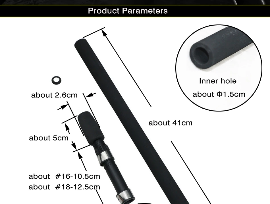 Descripción del producto:EVA negra de alta densidad, dura y súper fuerte.Buena opción para la construcción de varillas o reparación de varillas.Mango de EVA, tacto suave, diseño elegante, hace que tu pesca sea más divertida.Ligero, fácil de instalar.Portátil, cabe fácilmente en el maletero del coche, la escotilla del barco o la mochila.Material del mango: EVAMaterial del asiento del carrete: plástico, metal.Longitud frontal de EVA: aproximadamente 5 cm/2,0 pulgadasLongitud trasera de EVA: aproximadamente 41 cm/16,1 pulgadas#16 Longitud del asiento del carrete: aproximadamente 10,5 cm/4,1 pulgadas#18 Longitud del asiento del carrete: aproximadamente 12,5 cm/4,7 pulgadasDiámetro interior del mango de EVA: 15 mm#16 Diámetro interior del asiento del carrete: 16 mm#18 Diámetro interior del asiento del carrete: 18 mmEl paquete incluye:1 juego