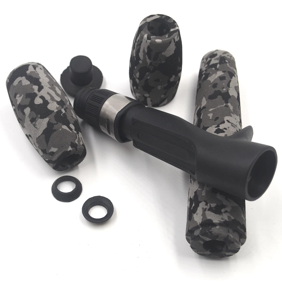 MNFT 1 Juego de mango de caña de pescar fundido y giratorio de cebo de agarre dividido EVA de camuflaje agarre trasero con asiento de carrete para construcción de varillas