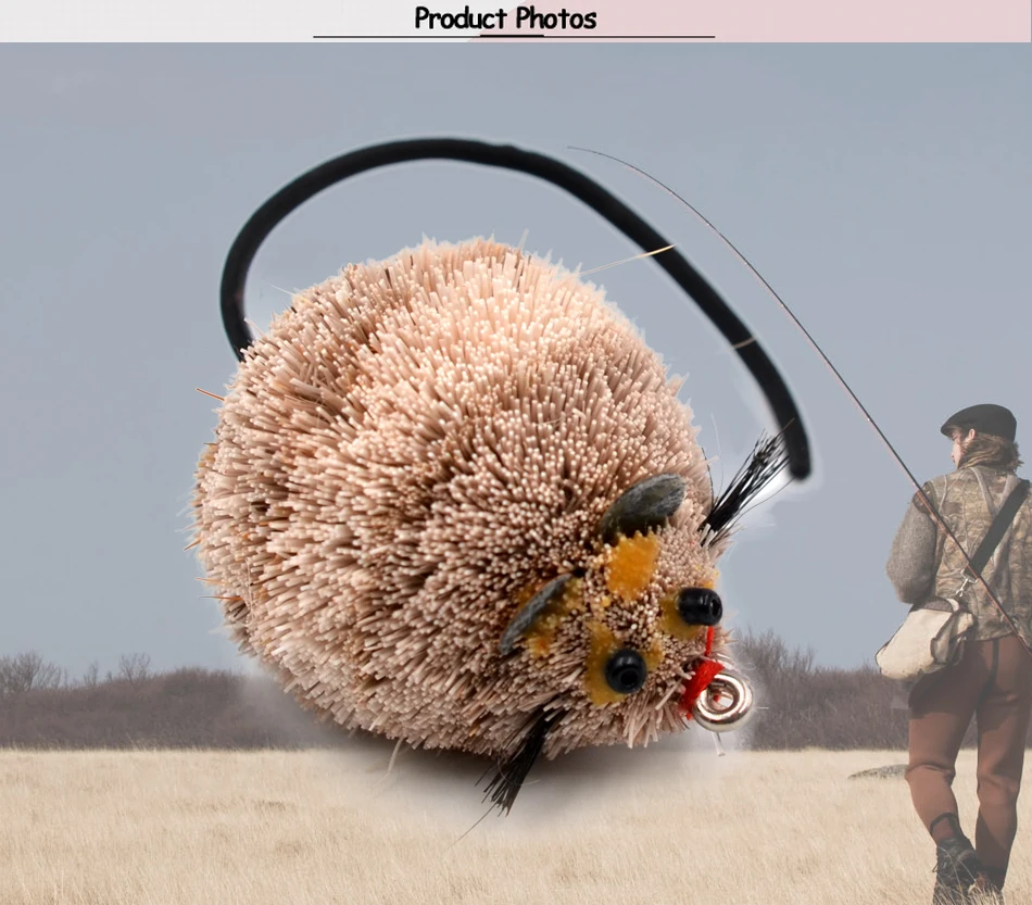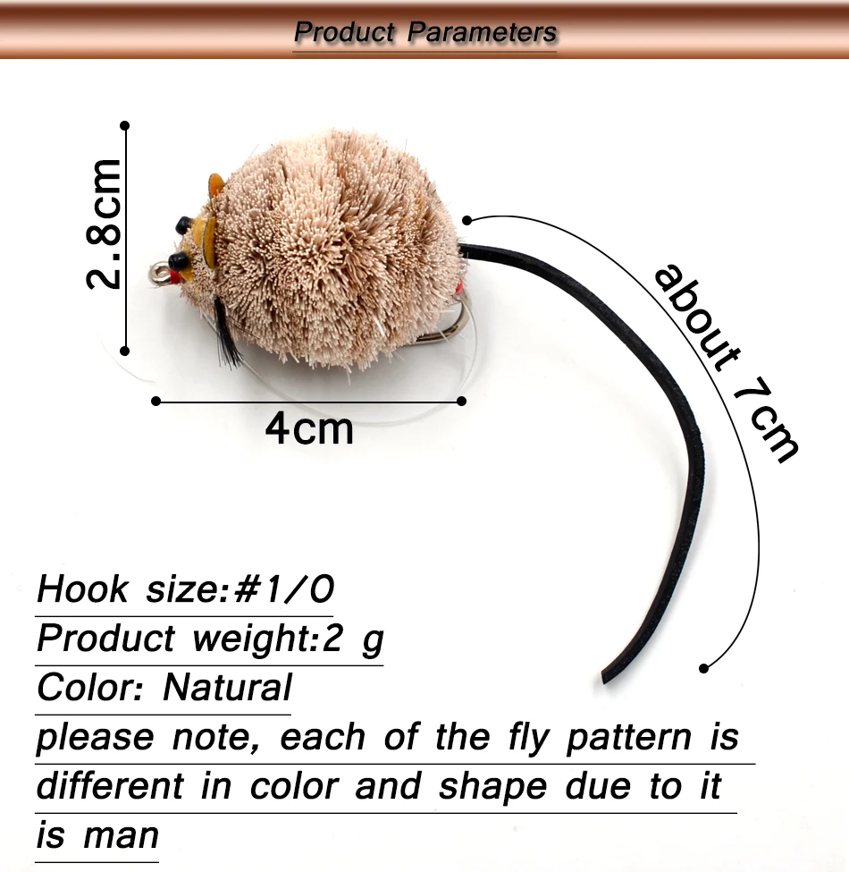 MNFT 1 Uds. Gancho para atar moscas, ratón de pelo de ciervo con gancho protector contra malas hierbas # 1/0 cebos flotantes para ratas con mosca de pesca