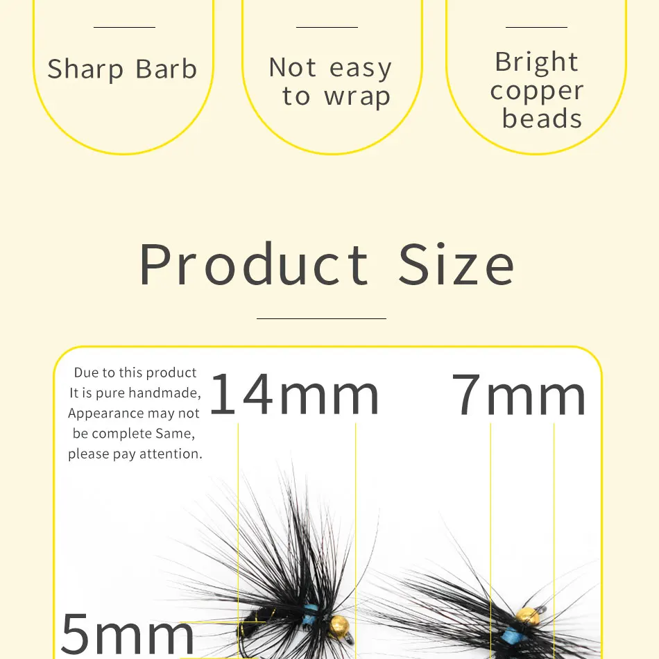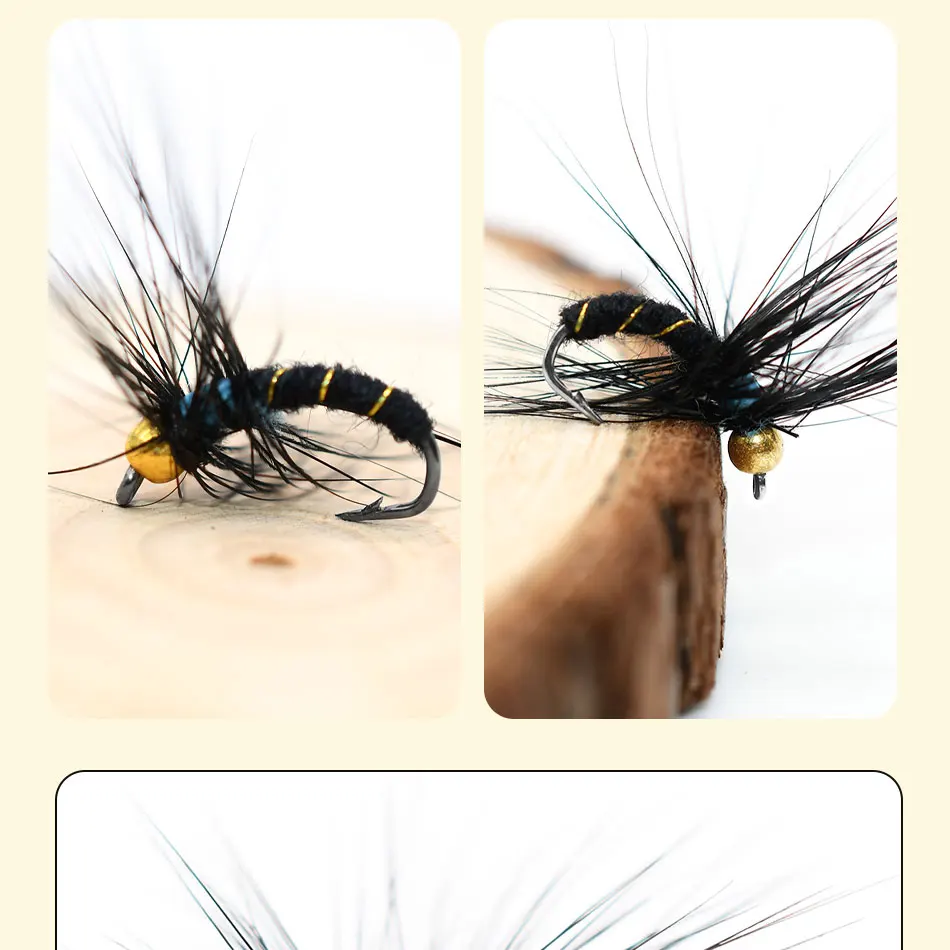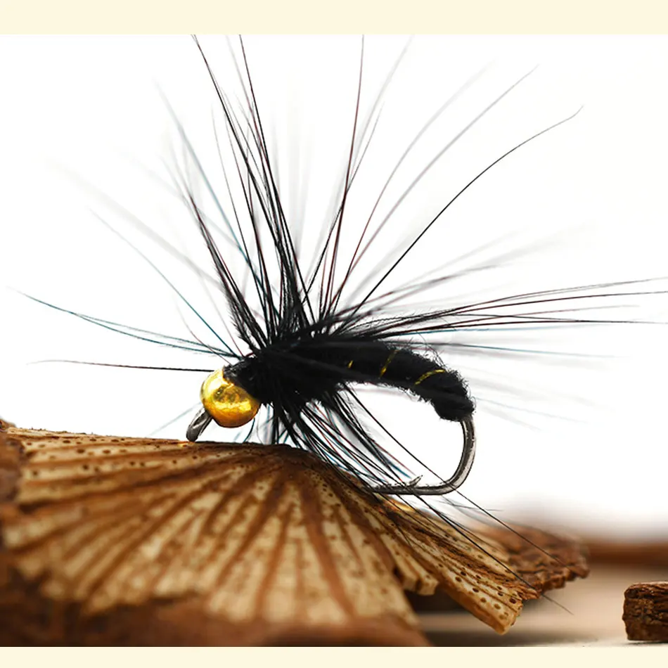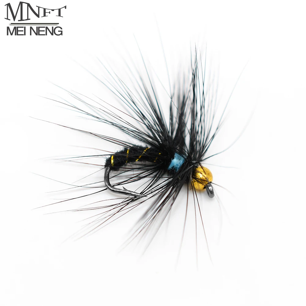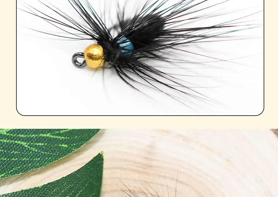 MNFT 10 piezas #10, cabeza de abalorio dorado, circo Caddis, azul y negro, pesca, ninfa, moscas, trucha, Mosca de pescado