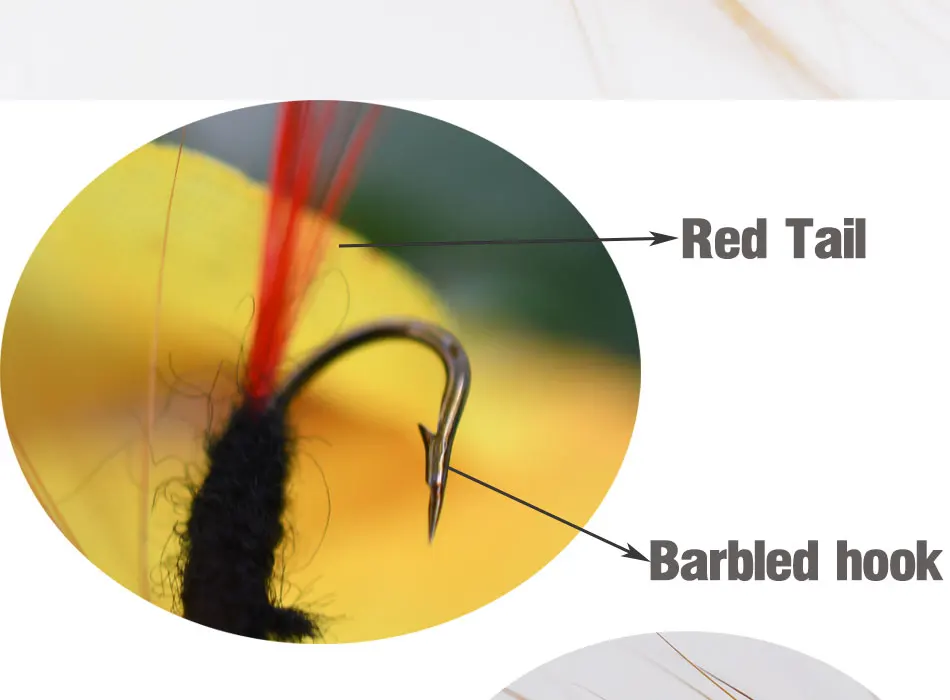 MNFT-10 piezas, 12 #, barba marrón, Mosca de cola roja, pesca húmeda, cebo de trucha