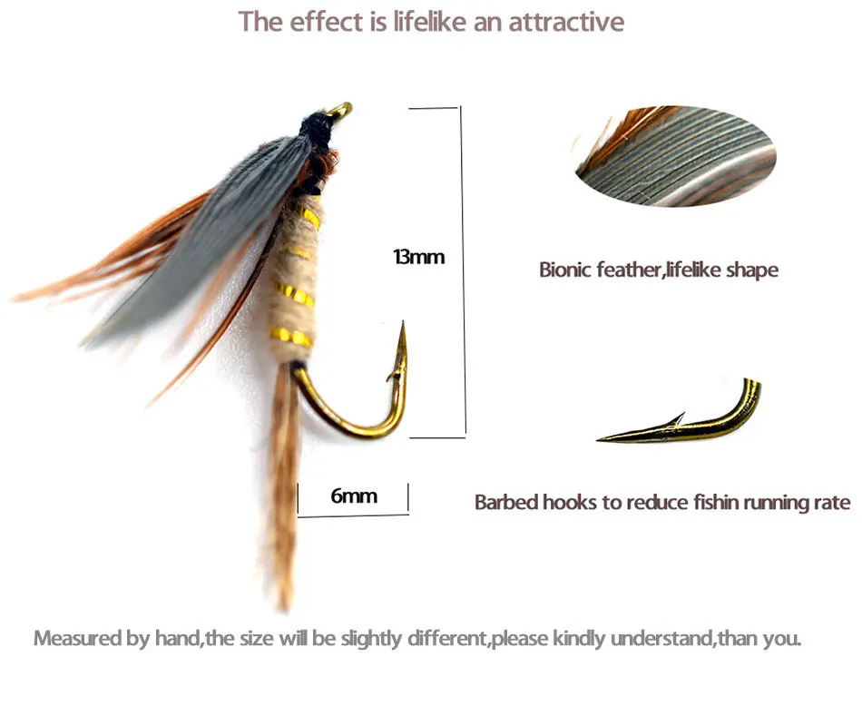 MNFT 10 piezas 12 # Pavo Real ala quemada mayo mosca trucha pesca Flie anzuelos de púas señuelo de pesca cebo para insectos
