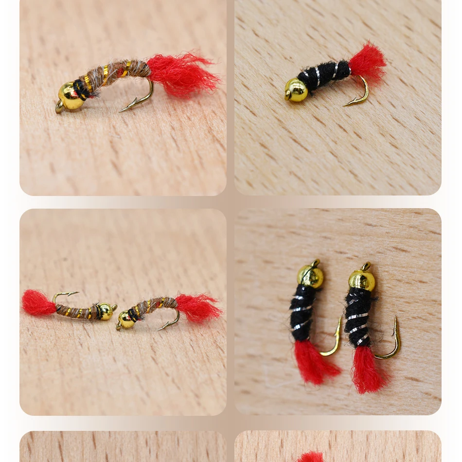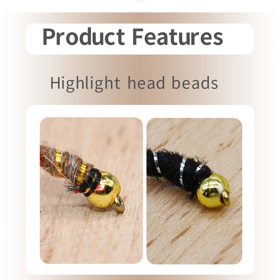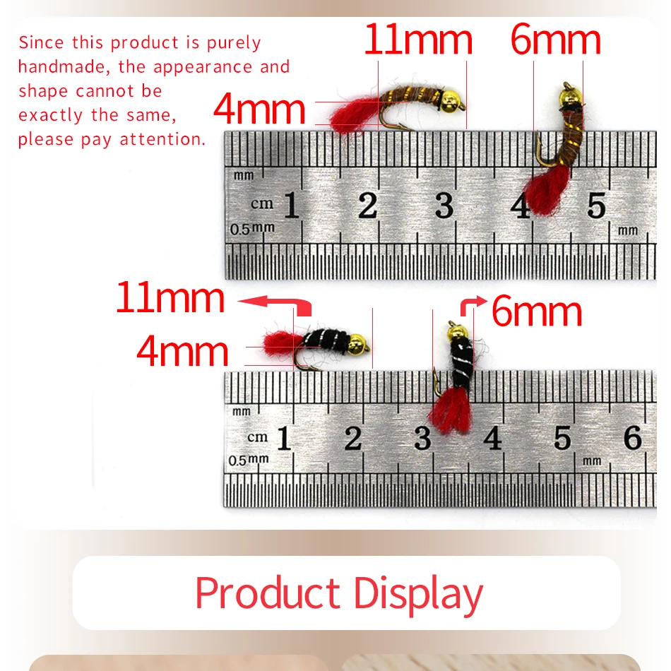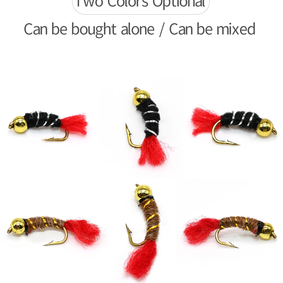 MNFT 10 piezas 14 # Señuelo de pesca con mosca de ninfa de cola roja Beadhead, cebo Artificial negro y marrón