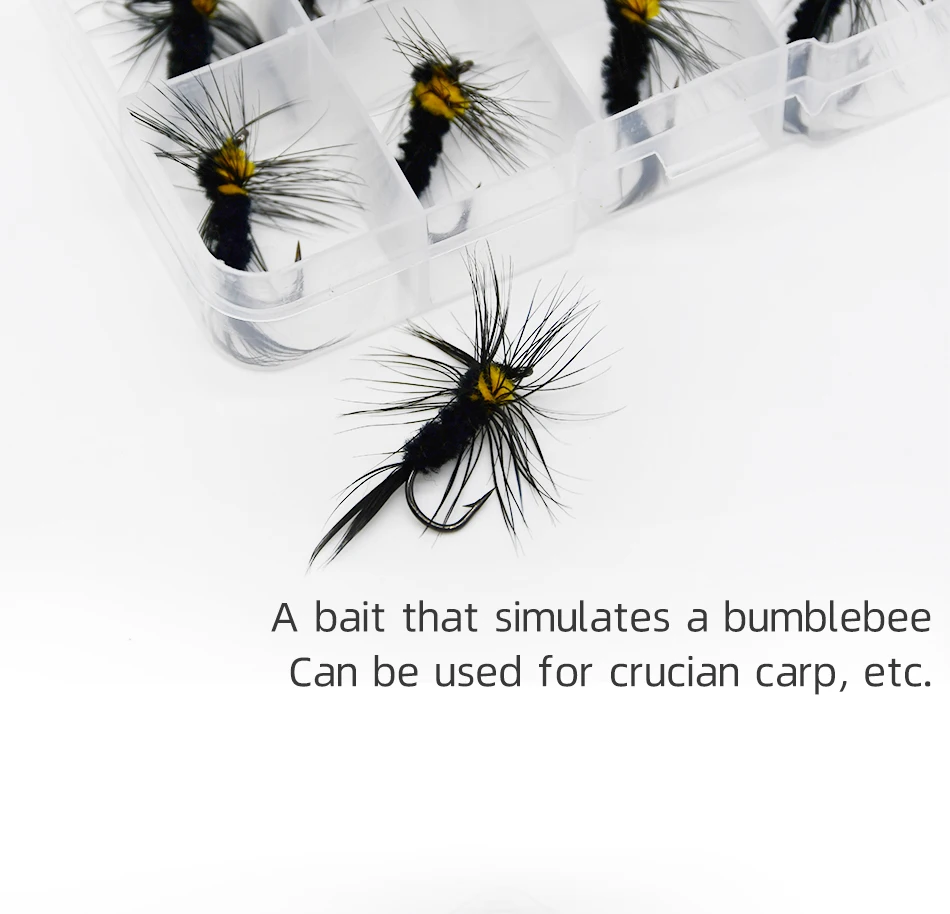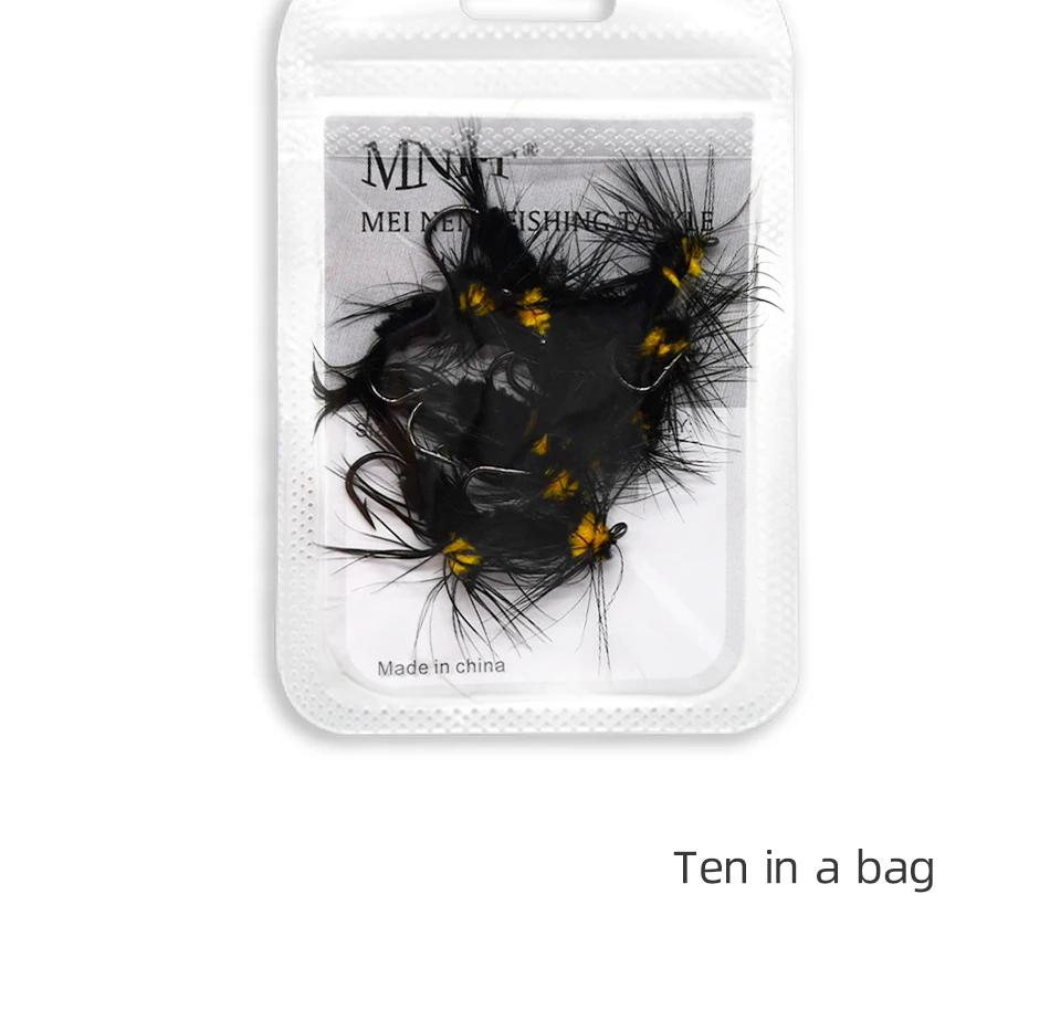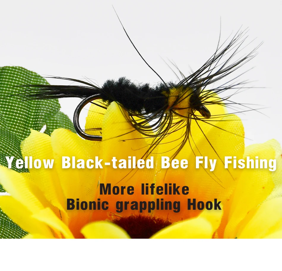 MNFT-10 piezas 6 #, cola de abeja, mosca Artificial, avispa amarilla y negra, cebo de pesca, moscas, trucha, pesca al aire libre, señuelo de insectos falsos