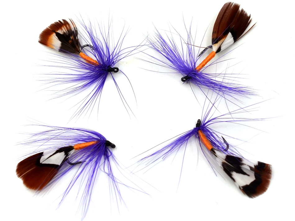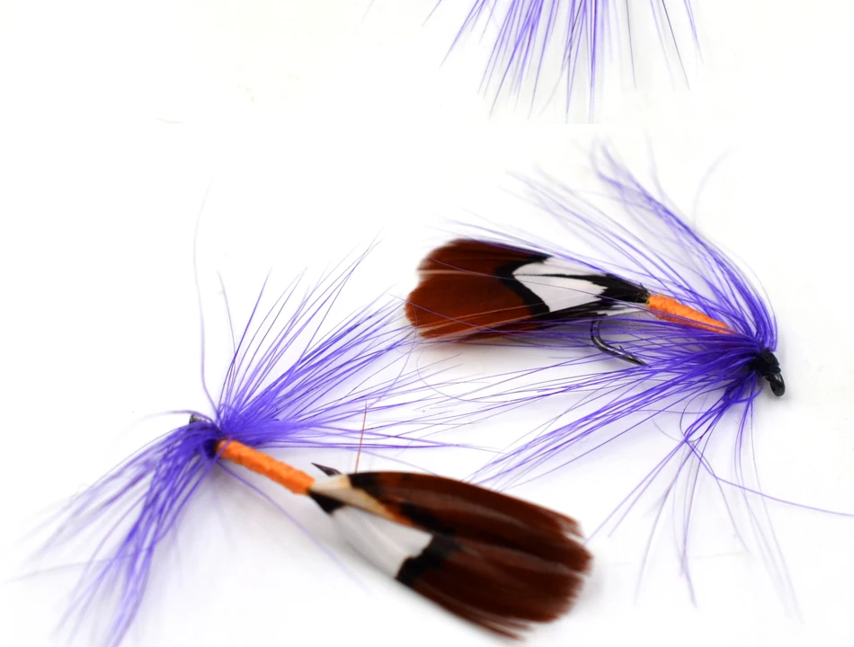 MNFT 10 piezas 8 # Gancho seco de lubina de barba púrpura, señuelo de pesca con mosca de ninfa, cola de plumas, atado de ninfa, señuelos de cebo de pesca con mosca