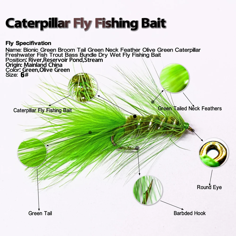 MNFT 10 Uds. Bugger de lana cuerpo de oliva moscas de pesca verdes trucha Steelhead mango largo atado de moscas 6 # Ganchos