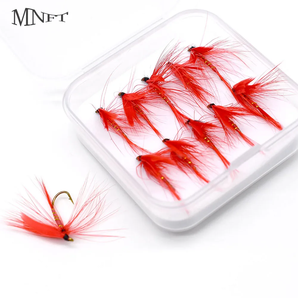 MNFT 10 Uds cebo de pesca con mosca para trucha salmón Mayfly señuelo forma realista rojo