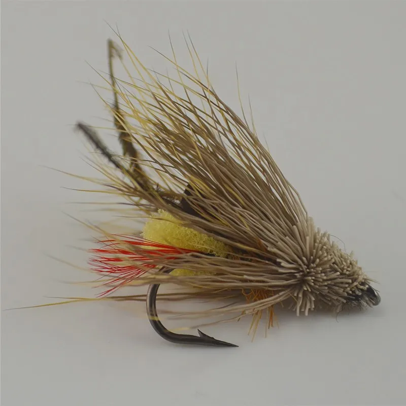 MNFT 10 Uds pesca con mosca tolva de hierba moscas tierra huevo amarillo seco dentro de barba marrón pavo real tamaño de mosca # 6