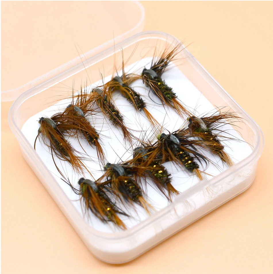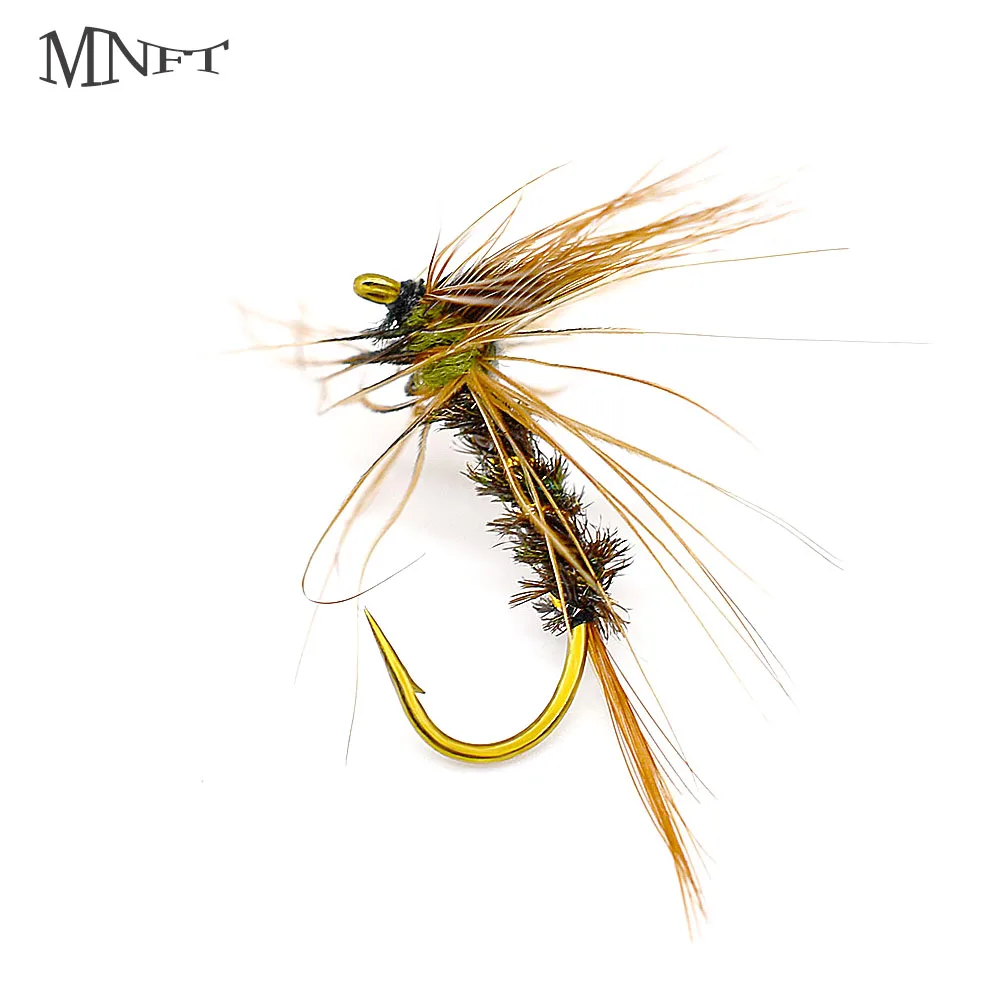 MNFT 10 unidades/paquete 8 # Moscas de trucha, paracaídas Adams, mosca seca irresible atada con anzuelo de púas de Color bronce, cebo de pesca Steelhead